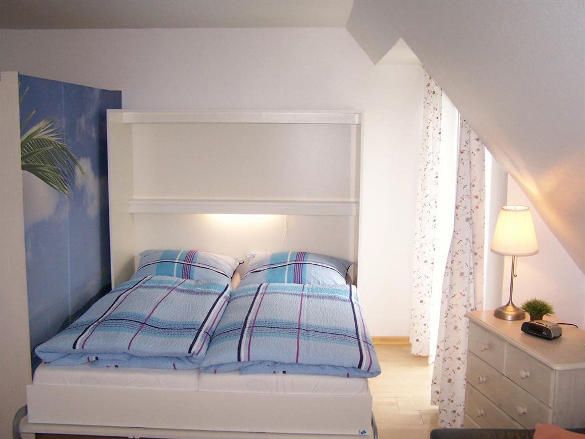 Die Ferienwohnung 3 liegt im Obergeschoss und verfügt über einen modernen, gemütlichen Wohnbereich mit Ausgang zum kleinen Südbalkon. Sie ist u.a. mit einer Sitzgruppe, Couchgarnitur, Flat-TV und ein Schrankdoppelbett ausgestattet. Ein kleiner separater Schlafraum mit 2 einzelnen Springboxbetten, eine separate Küchenzeile, sowie ein Duschbad sind vorhanden.