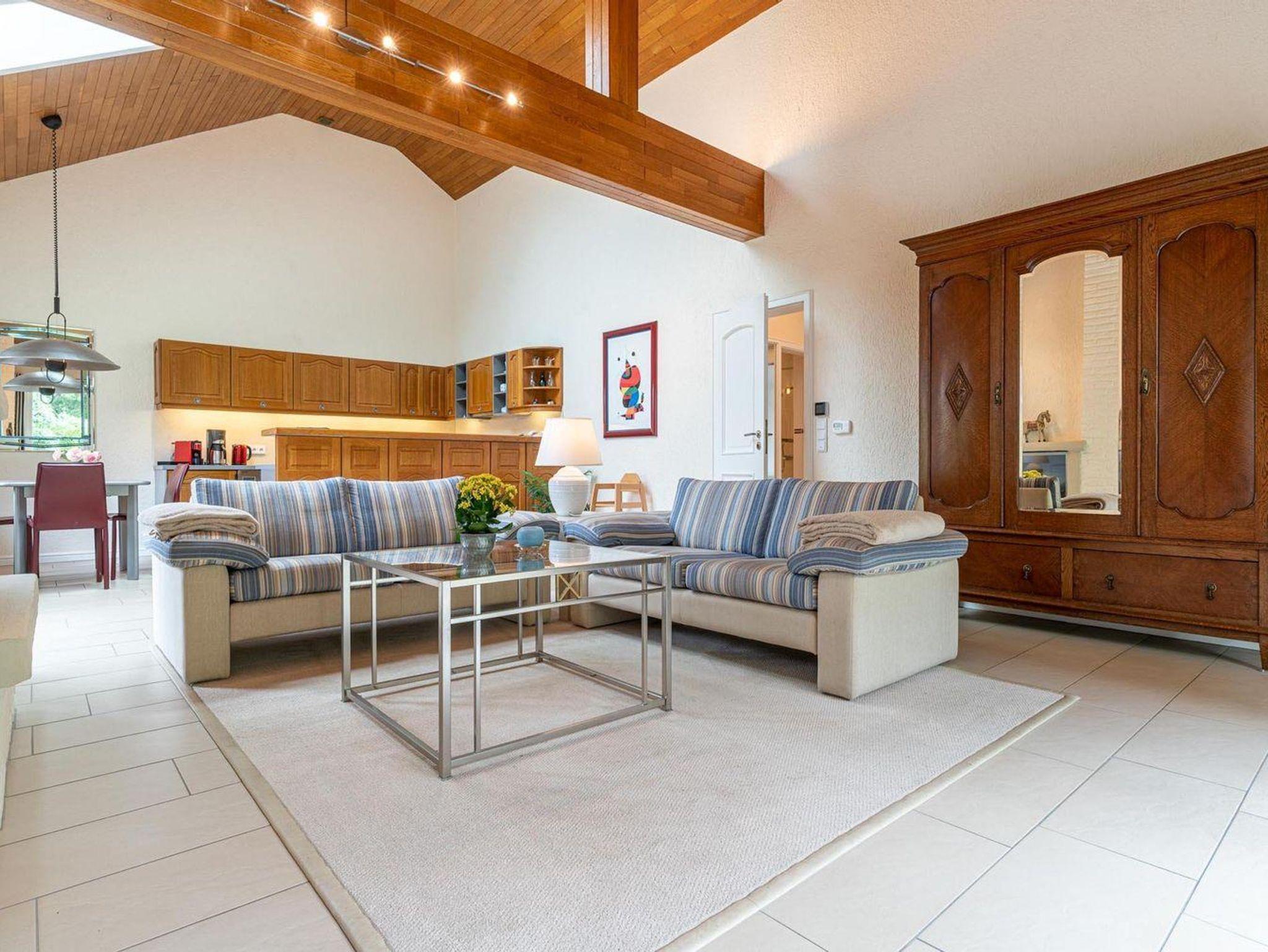Der Bungalow liegt in einer ruhigen Sackgasse im Ortsteil Dorf. In wenigen Gehminuten ist man im alten Ortskern, in dem sich neben einem Supermarkt, Bäcker und diversen anderen Läden auch mehrere Restaurants und Cafes befinden. In die andere Richtung sind es nur wenige Minuten bis zu einem Einkaufszentrum mit Sky, Aldi und Lidl, wo sich auch die Bahnstation Bad St.Peter Süd befindet. Der Südstrand ist bequem und schnell mit dem Fahrrad oder dem Bus zu erreichen. Ganz in der Nähe ist ein kleiner Wald zum spazieren.