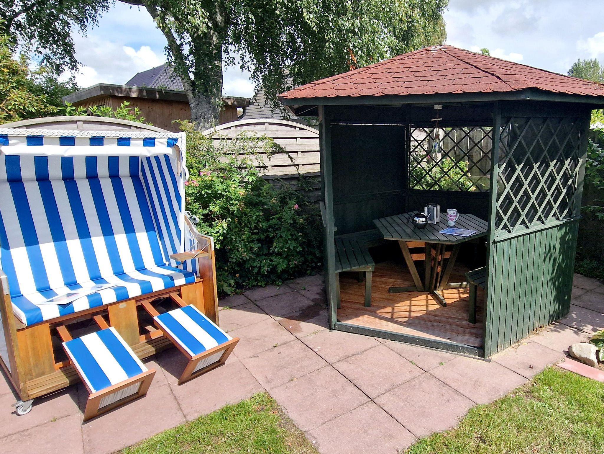 Für Entertainment im Haus ist gesorgt: TV mit Kabelanschluss, DVD Player, Sky Sport HD (Bundesliga, Championsleague, Formel 1, Handballchampionsleague) & Sky Welt, WLAN sowie BOSE-Anlage mit IPod Hub. Für Ihr Wellnessprogramm: Im Untergeschoss finden Sie eine Infrarotsauna und Trainingsrad zur freien Benutzung bereit. Sie finden hier ebenso Waschmaschine und Trockner. Es gibt ein komplett eingezäuntes und liebevoll angelegtes ca. 500 qm großes Grundstück mit einer im Sommer nicht einsehbaren Oase samt Gartenpavillon für gemütliche Stunden. Eine schöne Südterrasse mit Gartenmöbeln aus Holz für 6 Personen wird von einem dazu gehörenden Strandkorb vervollständigt. Auch ein Grill steht für unsere Gäste bereit. Eine Garage mit Abstellraum für Fahrräder, sowie ein zweiter Stellplatz ist vorhanden.