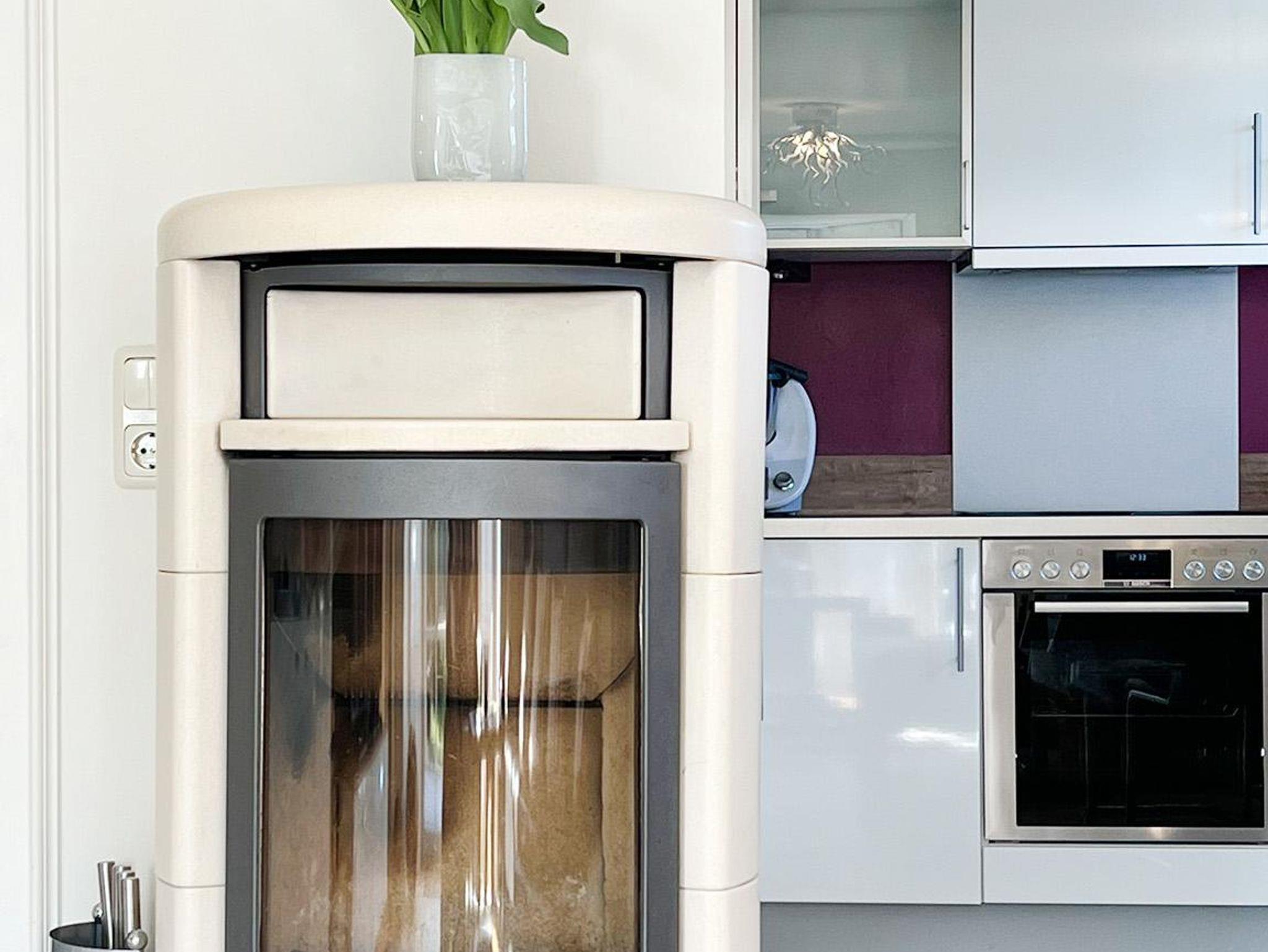 Kücheoffene Einbauküche, 4 Plattenherd mit Ceranfeld und Backofen, Dunstabzugshaube, Kühlschrank, Gefrierschrank, Spülmaschine, Mikrowelle, Kaffeemaschine, Wasserkocher, Toaster, Handmixer, Geschirr, Kochtöpfe, Esstisch mit 4 Stühlen