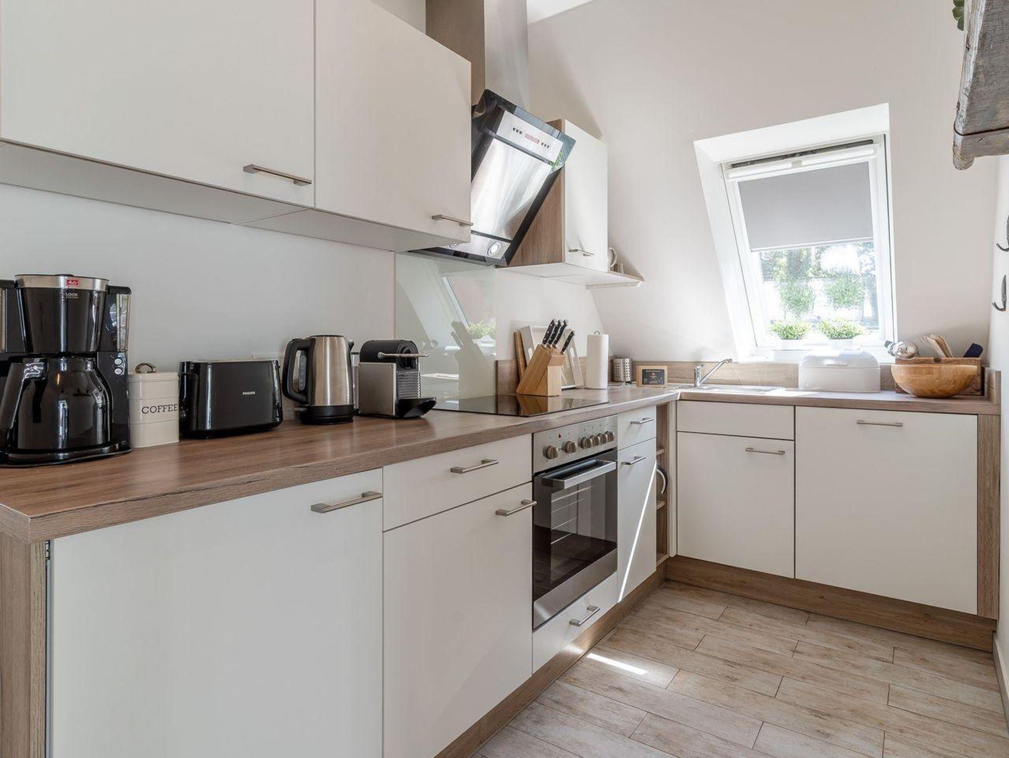 Die Küche ist vollständig ausgestattet und lässt keine Wünsche offen: Ein moderner Herd (Ceran), ein Elektro-Backofen, eine Spülmaschine sowie eine Mikrowelle und Kühlschrank mit Gefrierfach gehören zur Ausstattung. Hier können Sie Ihre Lieblingsgerichte zubereiten. Für zusätzlichen Komfort stehen Ihnen auch Küchenutensilien, Geschirr und Besteck zur Verfügung. Ein Wasserkocher und eine Kaffeemaschine für den perfekten Start in den Tag runden das Angebot ab.