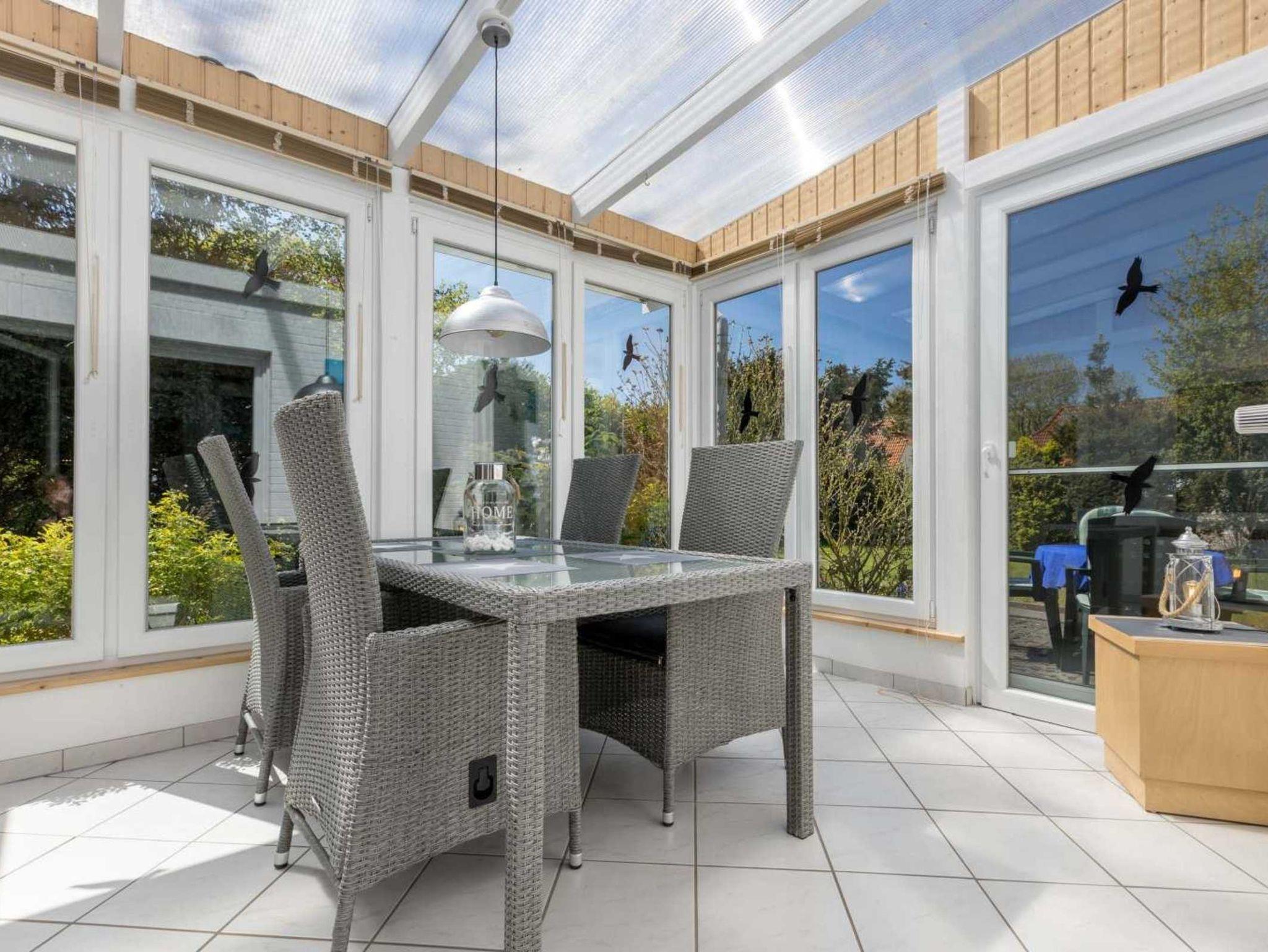 Wohnzimmer mit großem Ecksofa, großem SMART-TV (Sat), BluRay-Player, DAB Radio und Esstisch mit uriger Eckbank (3-4 Personen) und 2 Stühlen. Der schöne, helle Wintergarten nach Süden mit Tisch und 4 Stühlen sowie die überdachte Gartenterrasse mit Strandkorb bieten den perfekten Rahmen für kulinarische Genüsse und gesellige Momente in Ihrem Nordseeurlaub.
