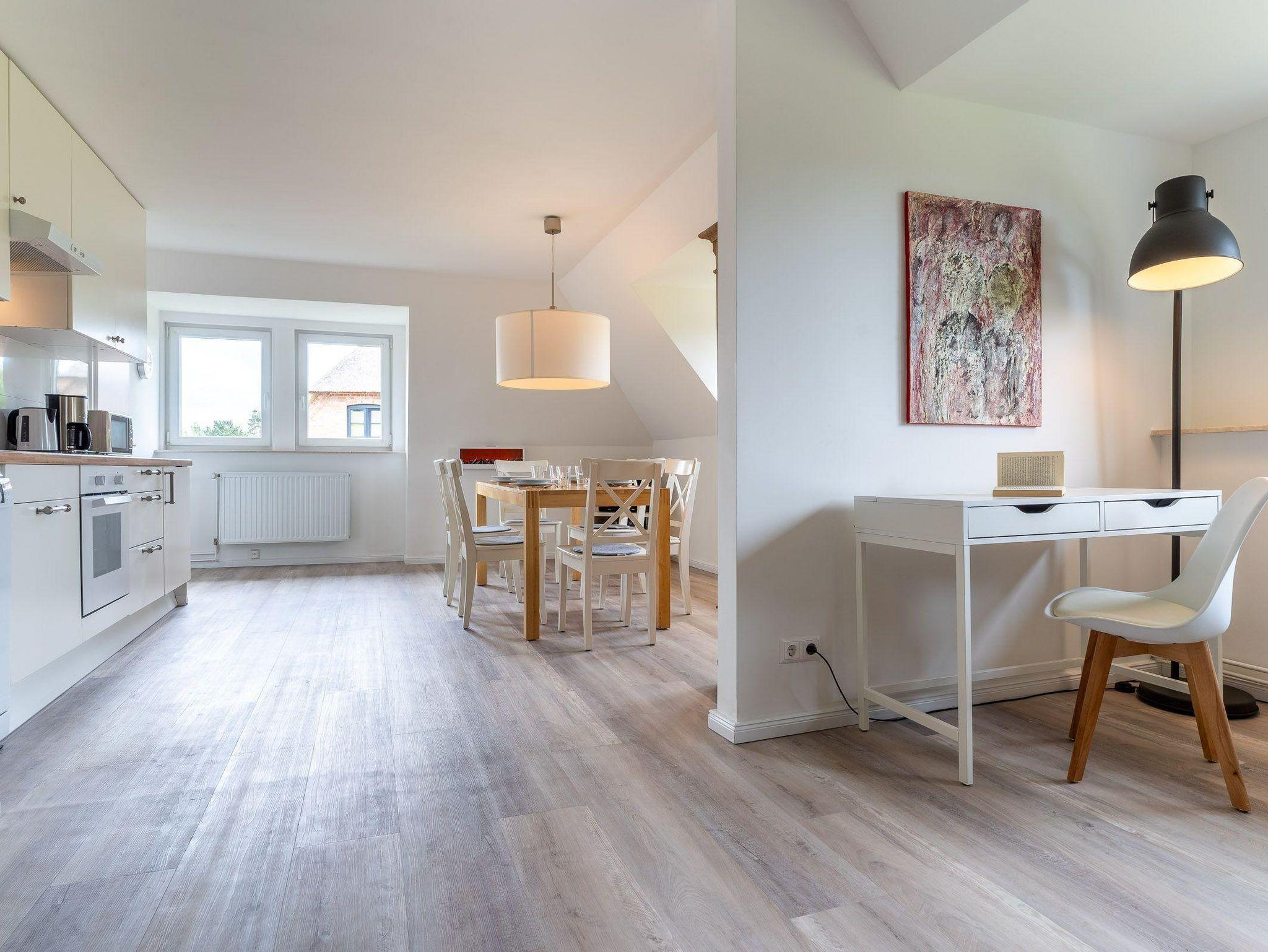 Das Appartment befindet sich in einem Ende 2018 neu gedeckten Reethaus im stillen Dorf in einer Sackgasse gelegen,
