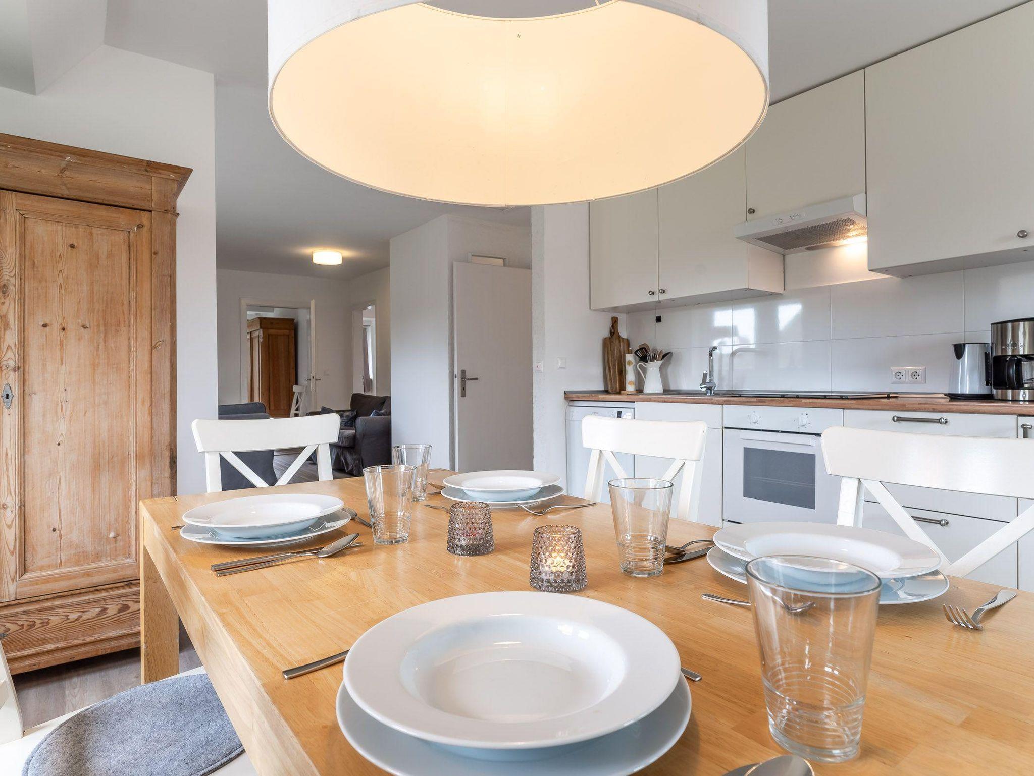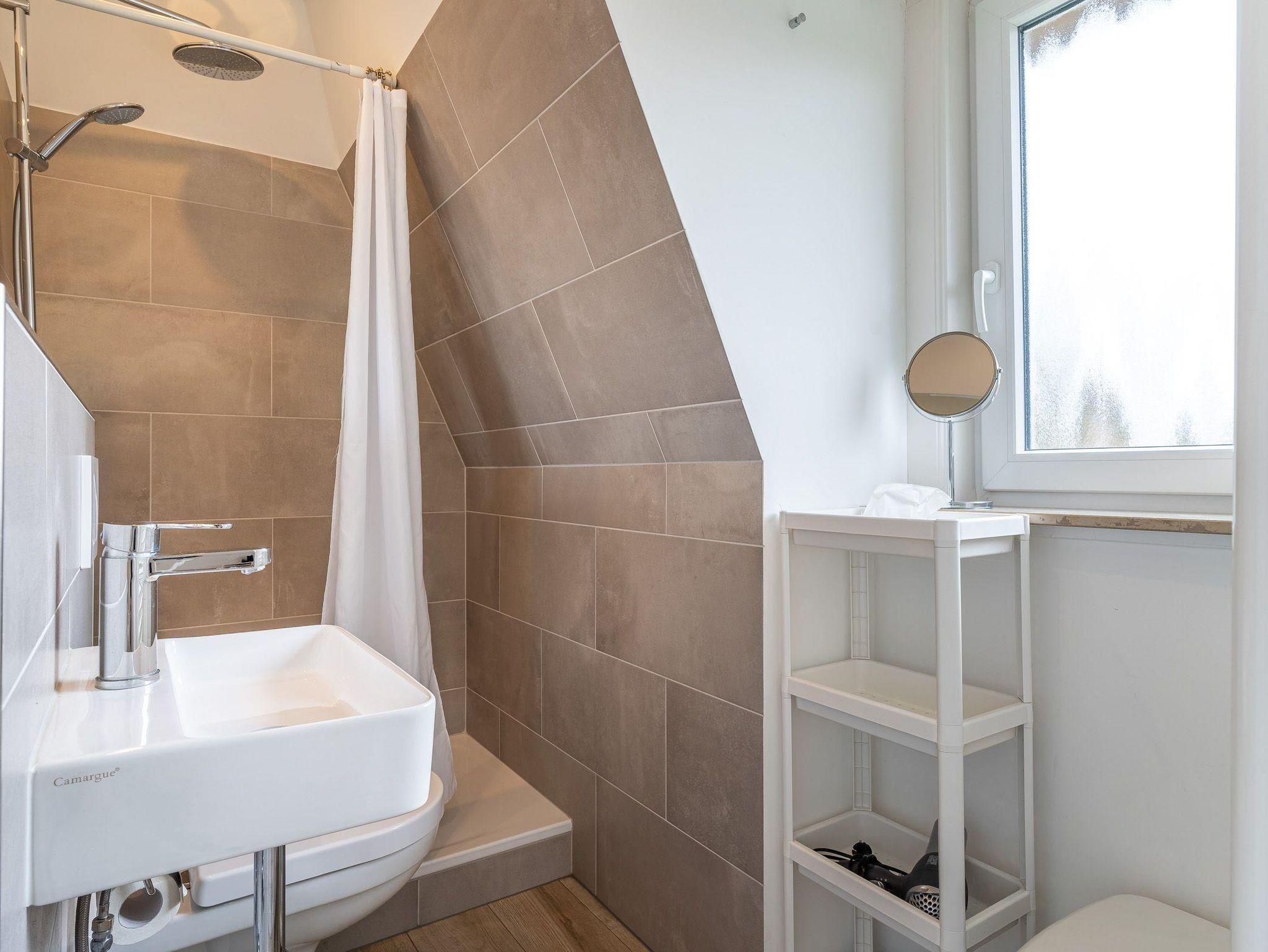 Die Wohnung ist mit hellem hochwertigen Vinyl ausgelegt und mit antiken Bauernmöbeln neben selbstgemalten Bildern geschmackvoll eingerichtet. Durch die Gauben erhält das Appartment einen gemütlichen Charakter. Ein kleiner Teepavillon im Garten lädt zum Verweilen oder Sonnen ein.