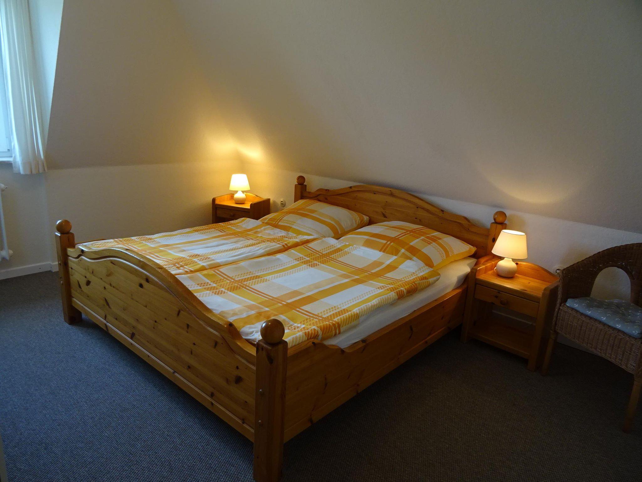 • ein geräumiges Schlafzimmer mit Doppelbett,