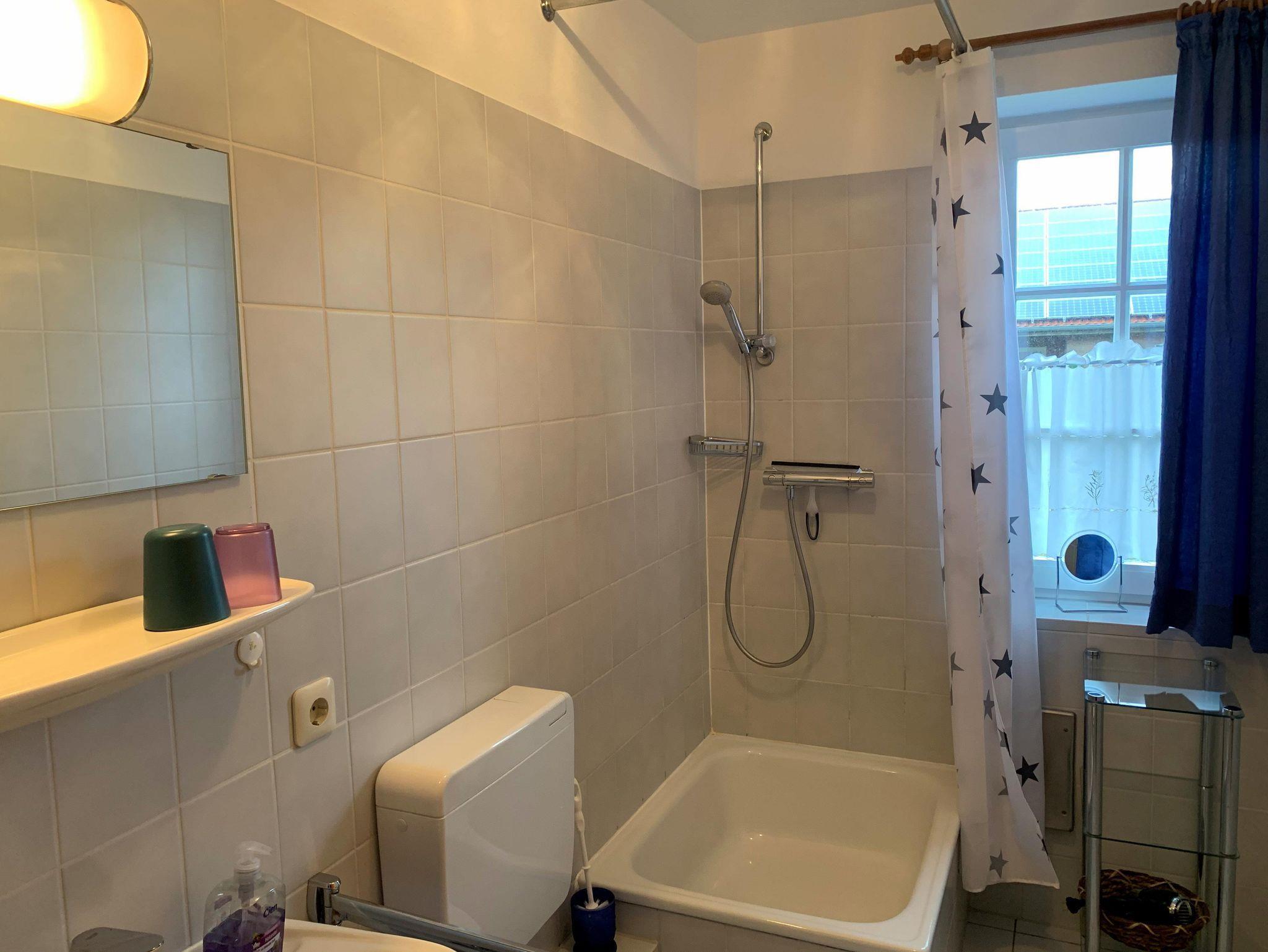 Bad: Dusche, Waschbecken, WC