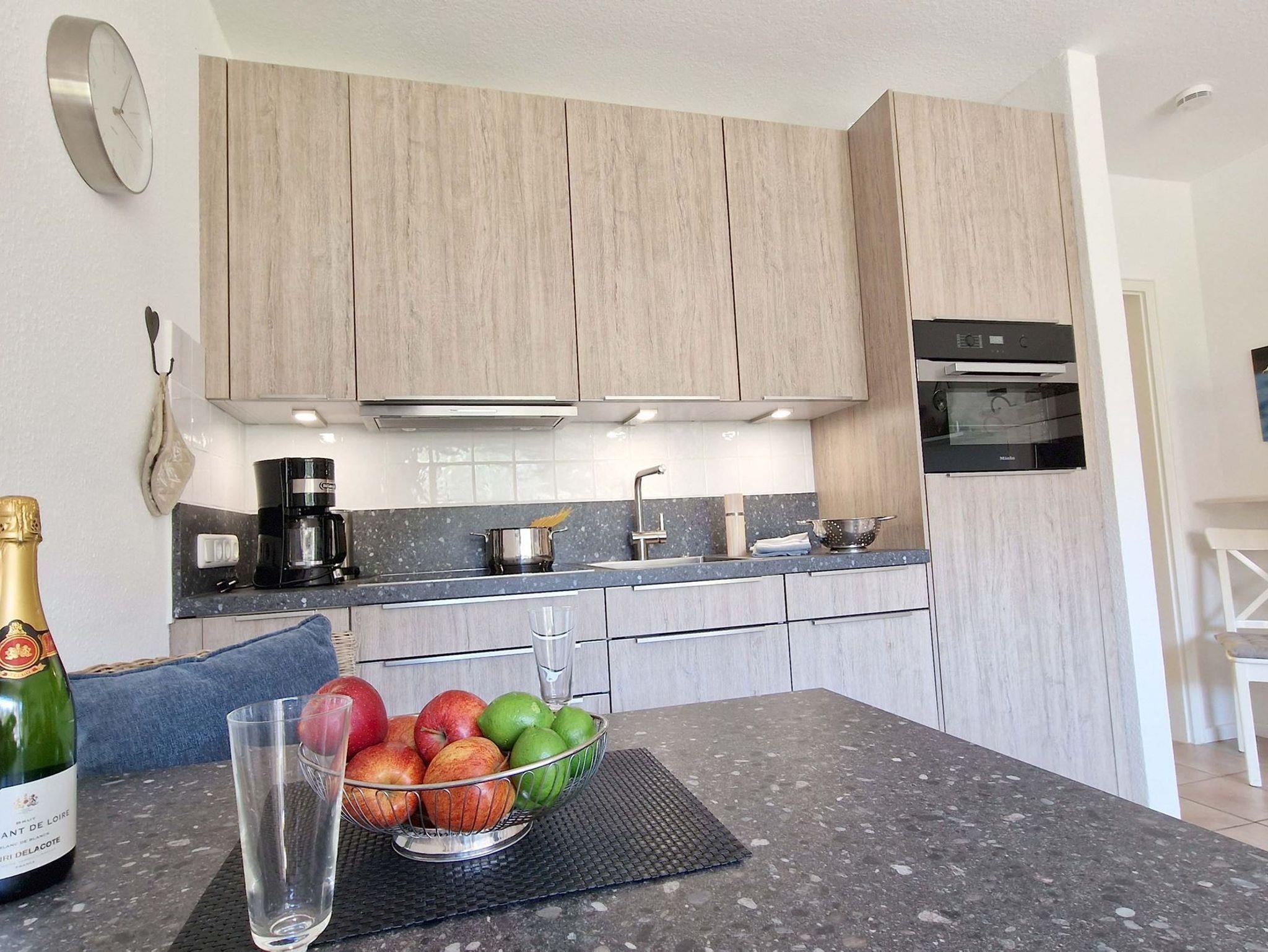Hochwertige Küchenzeile: Bereiten Sie Ihre Mahlzeiten in der gut ausgestatteten Küchenzeile mit Geschirrspüler zu, die Ihnen den Komfort von Zuhause bietet.