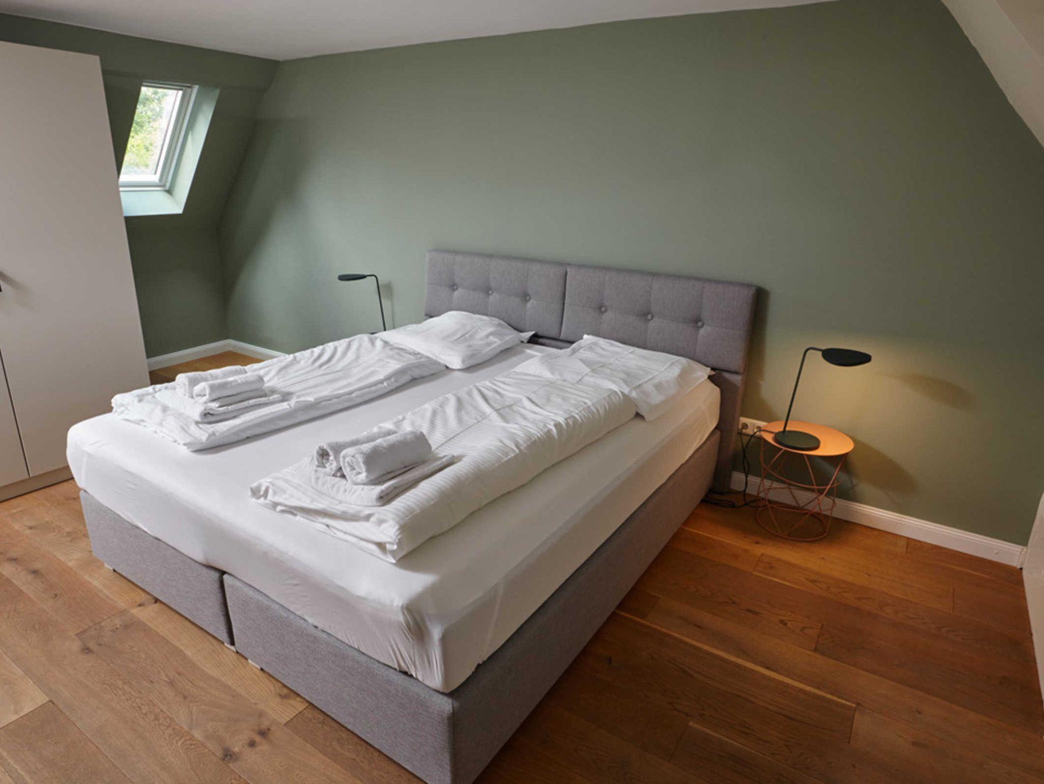 Die 4* Ferienwohnung Hohe Düne verfügt über 2 Schlafzimmer. In dem Schlafzimmer I befindet sich ein Doppelbett. In dem Schlafzimmer II zwei Einzelbetten. Das Dusch Bad und die Toilette sind separat. Das große Wohnzimmer lädt zum Chillen ein, während an der großen Tafel gut gespeist werden kann. Die vom Deutschen Tourismus Verband ausgezeichnete Wohnung liegt im 1. OG und ist mit 80 qm großzügig angelegt.