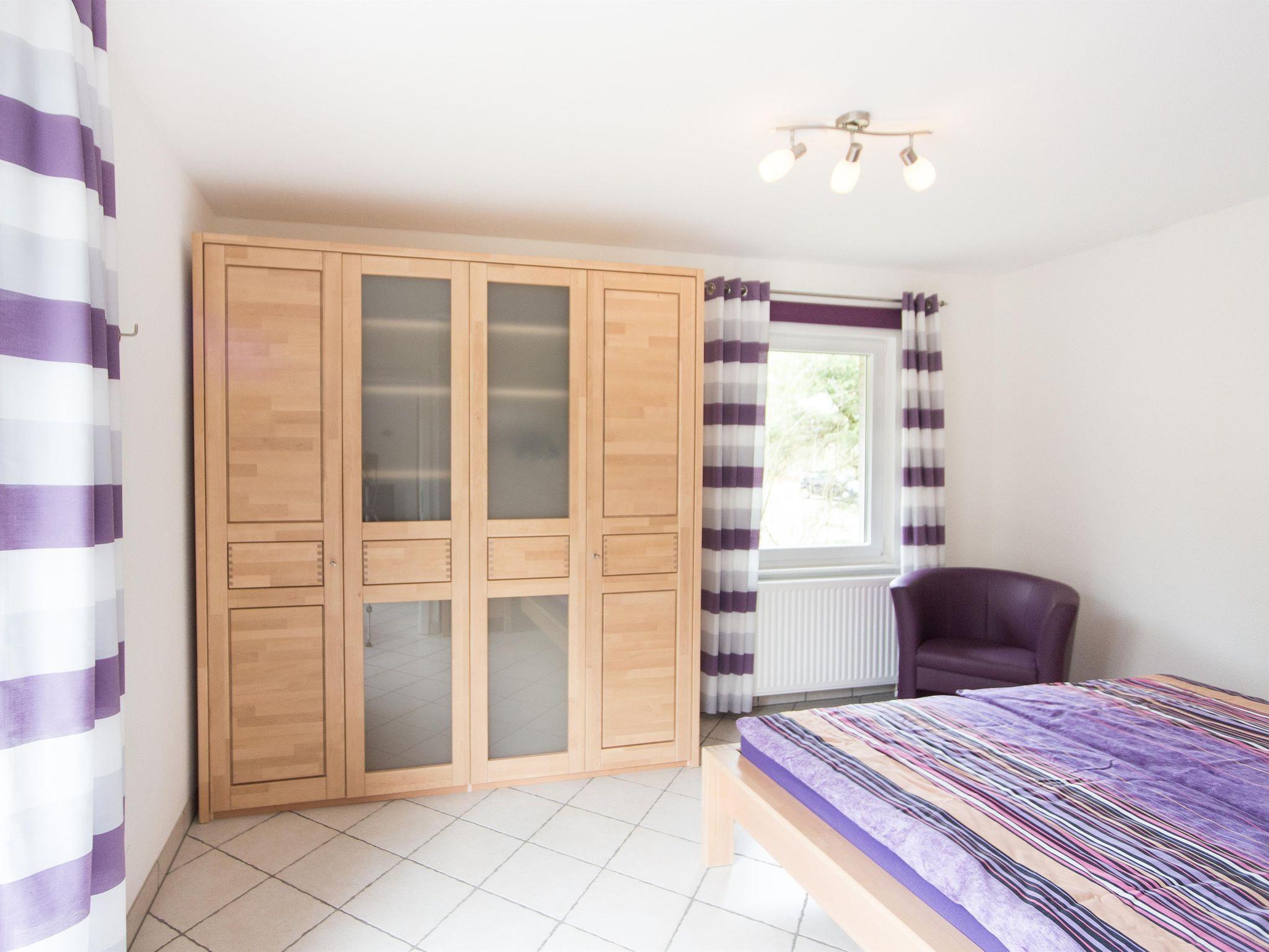 Schlafzimmer 1: Doppelbett (Liegefläche 200 x 180 cm), 4türiger Kleiderschrank, Sessel, Fliegengitter