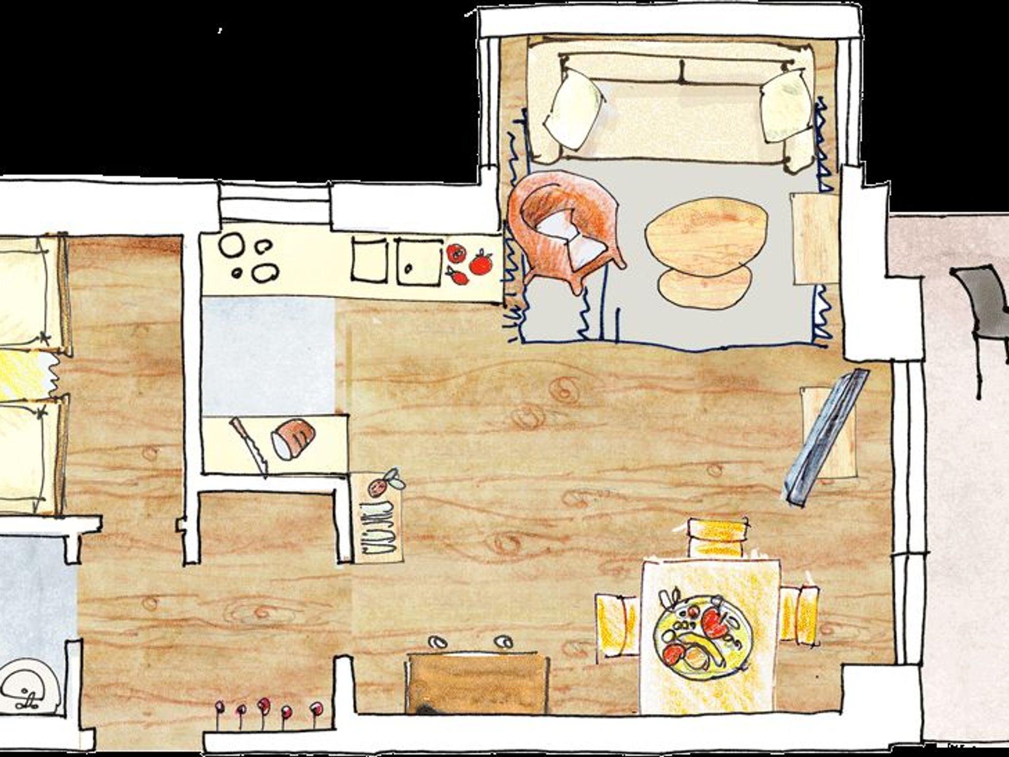 Das Sofa ist mit wenigen Handgriffen zum Schlafen ausziehbar, ein Sat-TV Flachbildschirm, Stereoanlage (CD, MC, DVD, MP3) ist vorhanden.