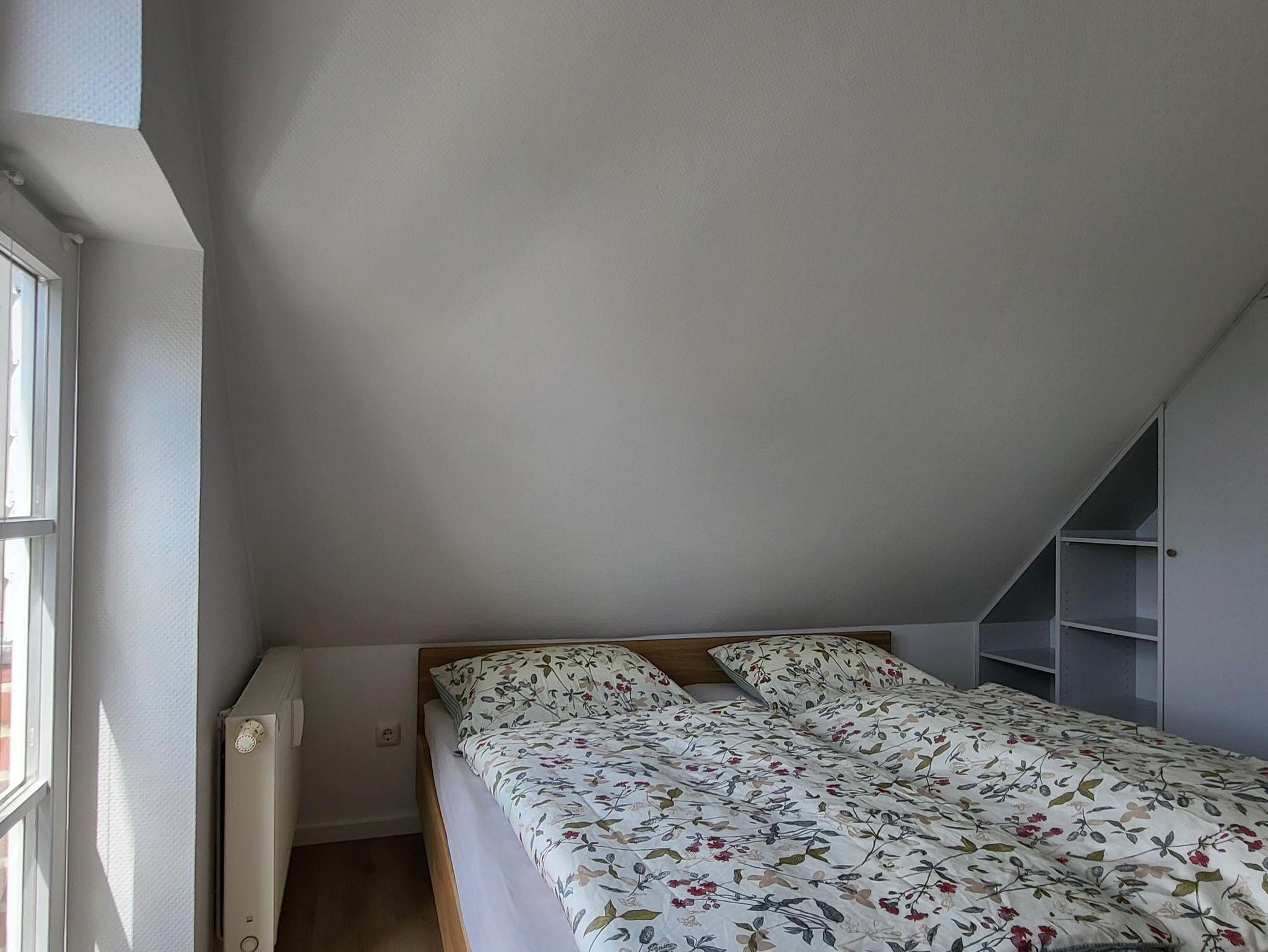 Die Wohnung 7 befindet sich im Ober- und Dachgeschoss und verfügt über 3 Zimmer für 2 Personen und ist 47 m² groß. Es ist ein Süd-West Balkon vorhanden, 2024 modernisiert und neu eingerichtet.