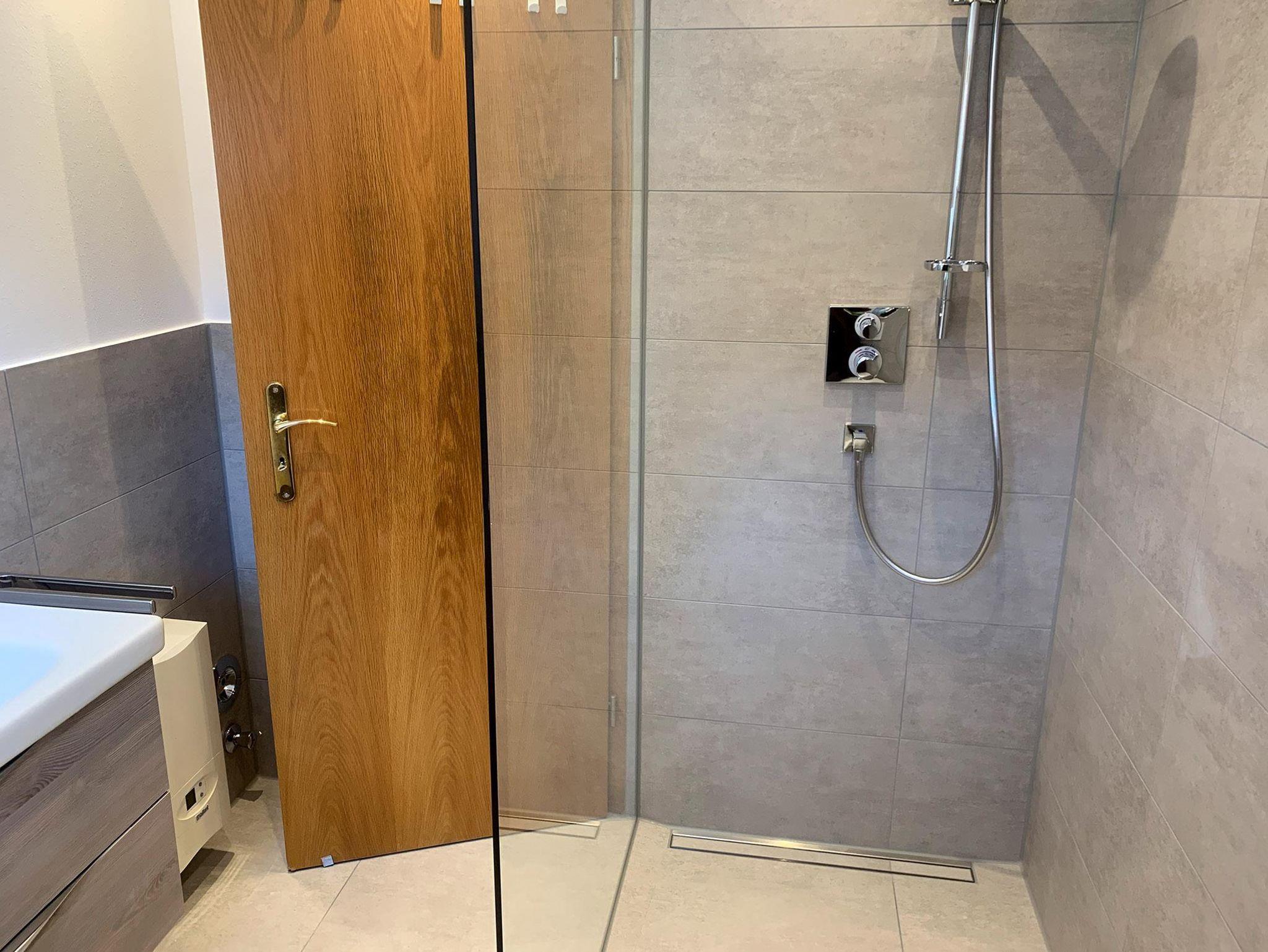 Bad: Dusche, Waschbecken, WC, Duschkabine, Schrank, Staubsauger