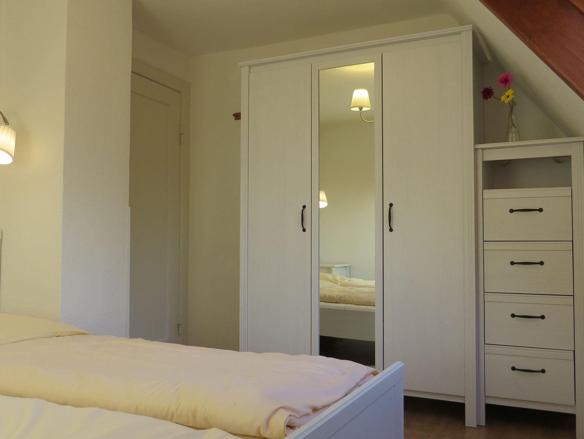 Wohnung 304 - ca. 56 qm, max. 4 Personen. Einfach ausgestattete 3-Zimmer-Ferienwohnung im Haus Aufwind mit ca. 55 qm auf 2 Ebenen (EG/OG) für bis zu 4 Personen. Zentrumsnahe Lage im Ortsteil Dorf in St. Peter-Ording. Alle Geschäfte und Restaurants der Dorfstraße sind in wenigen Gehminuten erreichbar. Wohnzimmer mit Sofa (2er), 2 Sesseln, TV (Sat), DVD-Player und Hifi-Anlage. Separate Küche mit Backofen, Mikrowelle, großem Kühlschrank mit Gefrierfach, Geschirrspüler. Essbereich mit Tisch und 4 Sitzplätzen (Eckbank/Stuhl). 1. Schlafzimmer mit Doppelbett (2x 80 x 200cm), Nachttische, Kleiderschrank, Kommode 2. Schlafzimmer mit zwei Einzelbetten (je 90 x 200cm) und Kleiderschrank Badezimmer (Duschbad) mit Dusche, WC und Föhn. Flur mit Garderobe und Spiegel im Eingangsbereich. Vor dem Eingang steht Ihnen eine kleine Terrasse zur Verfügung, Gartennutzung und Nutzung eines Grillplatzes ( 2 Grillplätze sind auf dem Grundstück vorhanden) ist möglich. Pkw-Stellplatz, Fahrradabstelle vorhanden. WLAN. Gemeinschaftliche Waschmaschine und Trockner gegen Gebühr im Keller des Hauses. Elektrische Direktheizung.