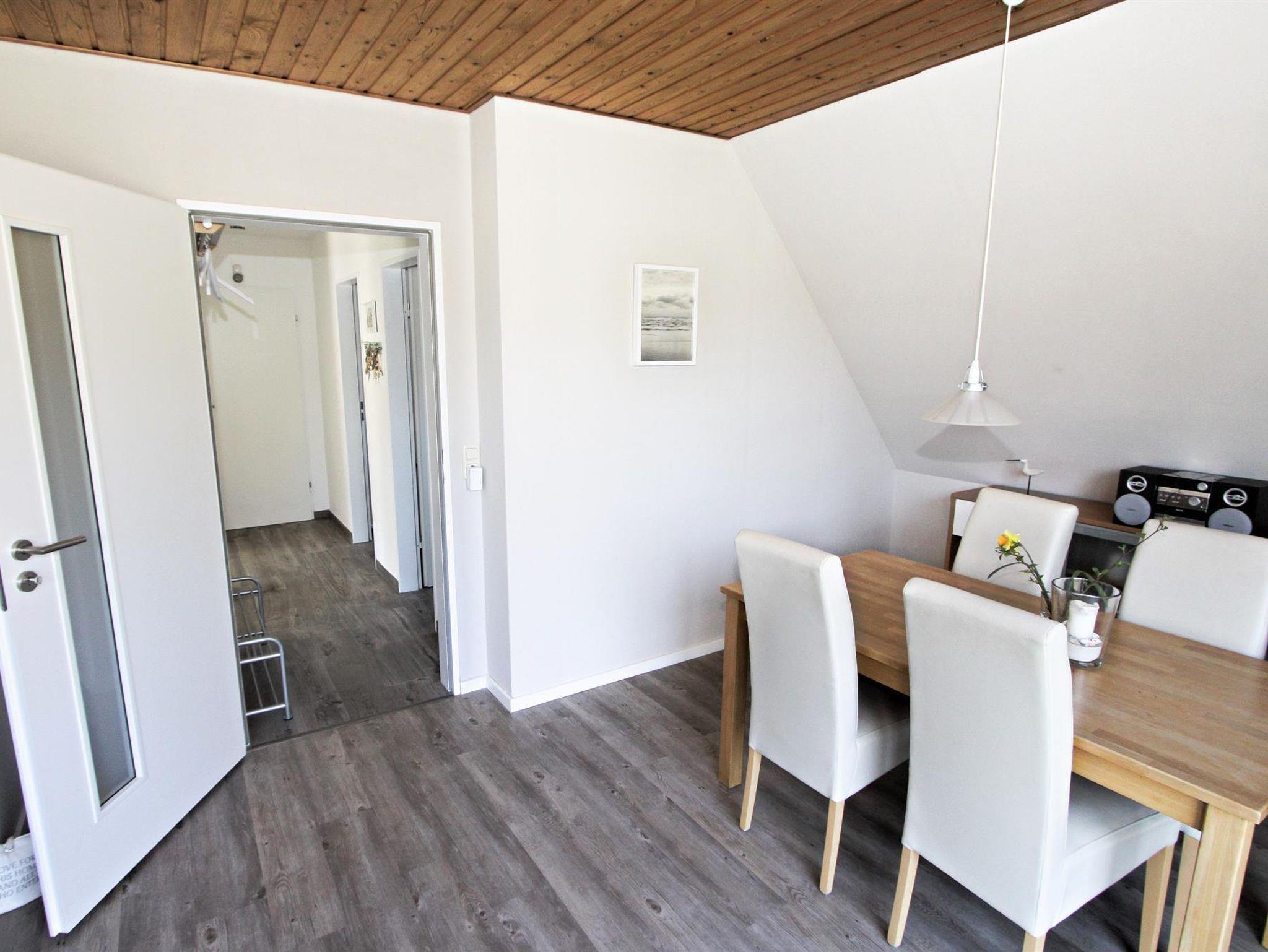 Die 60 qm große und im Jahr 2021 komplett renovierte Wohnung sân bietet Platz für 4 Personen. In der im Obergeschoss des Hauses Flut liegenden geschmackvoll eingerichteten Wohnung erwarten Sie ein Wohnzimmer mit Essplatz, Garnitur, Liegesessel, SAT Flachbildschirm, DVD-Player, Hifi Anlage und eine separate Küche mit Geschirrspülmaschine, etc.