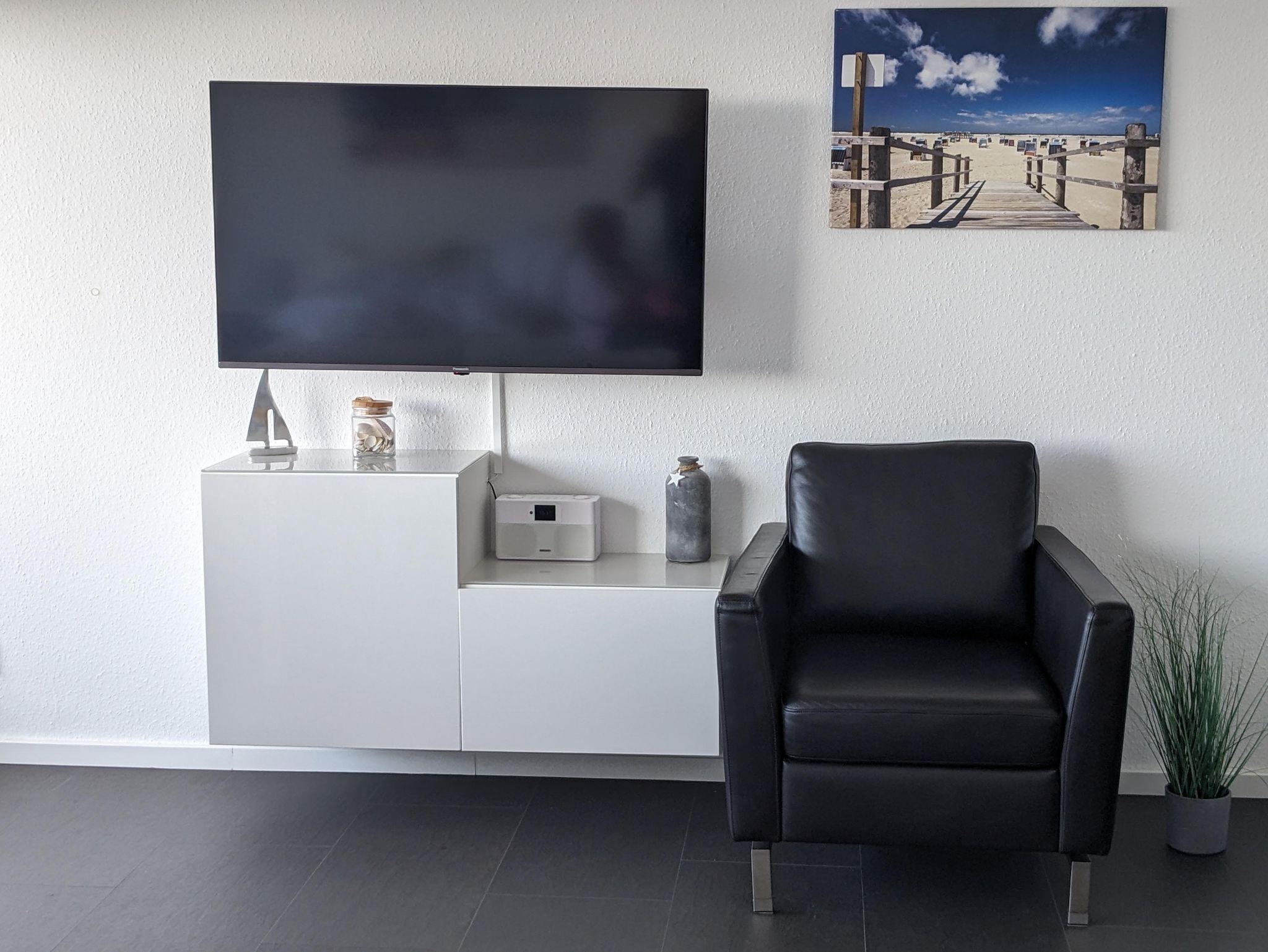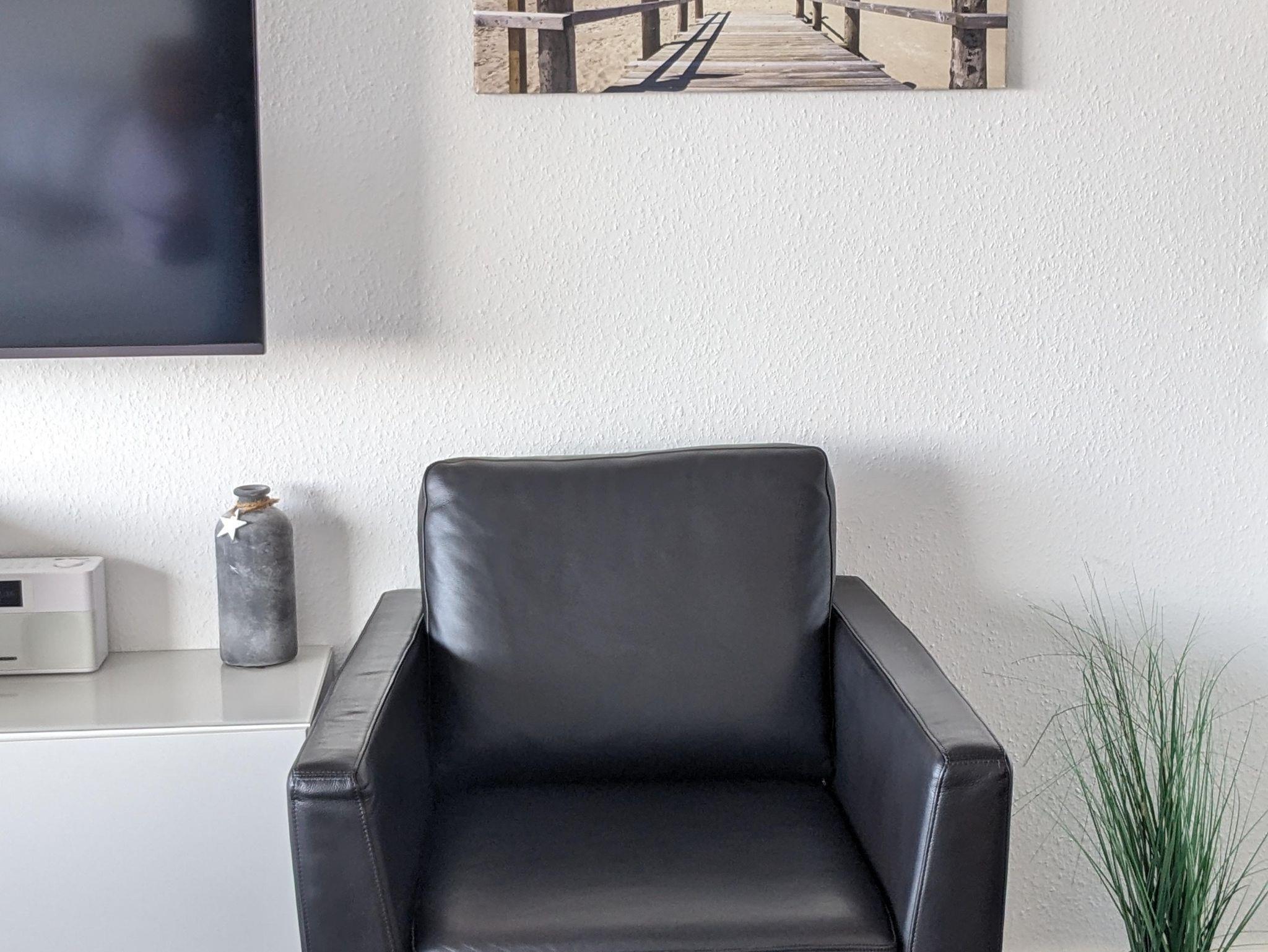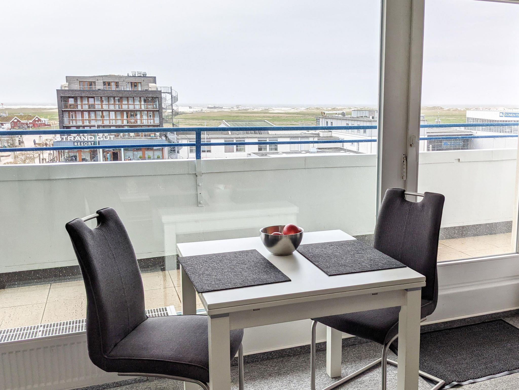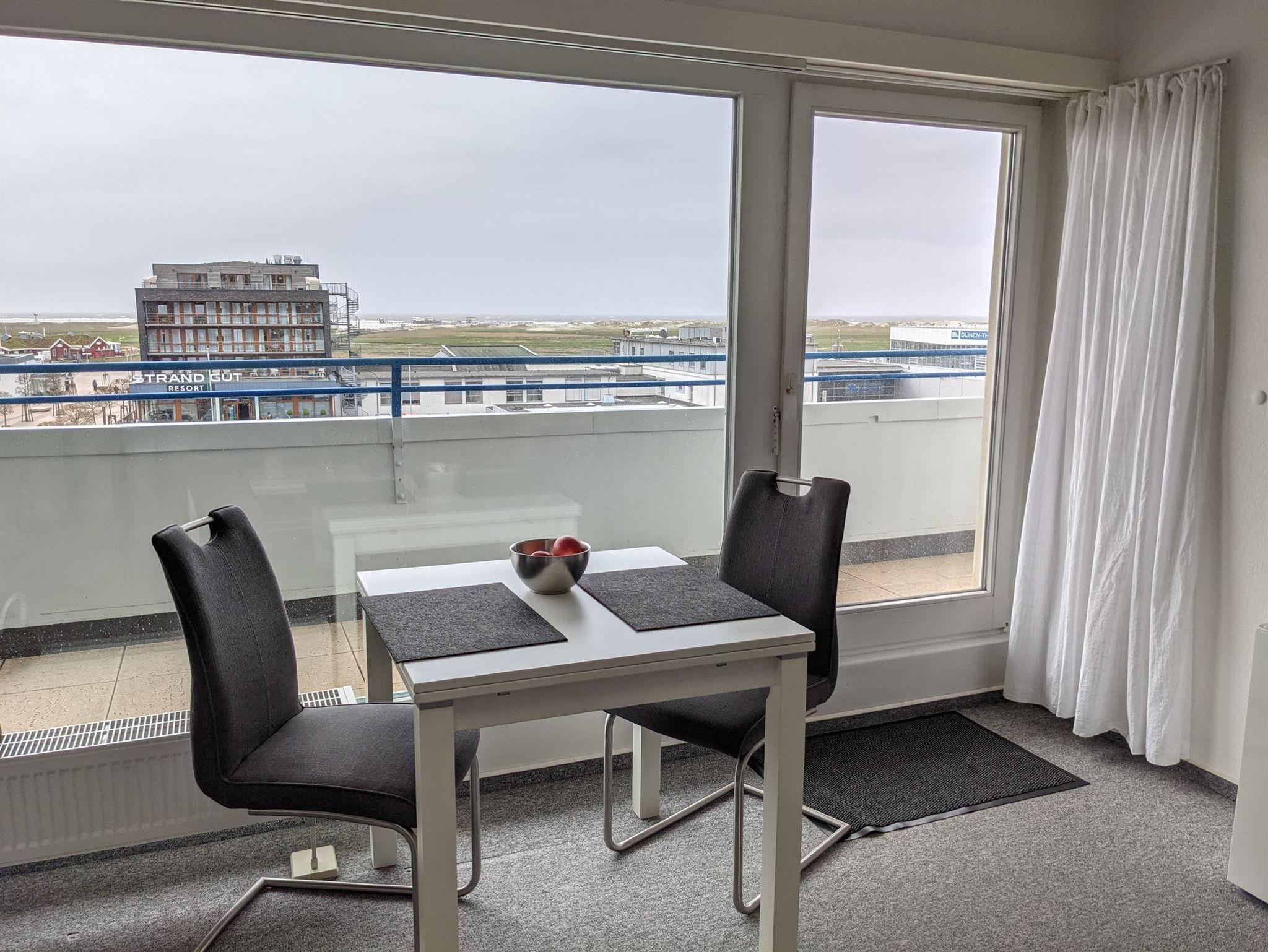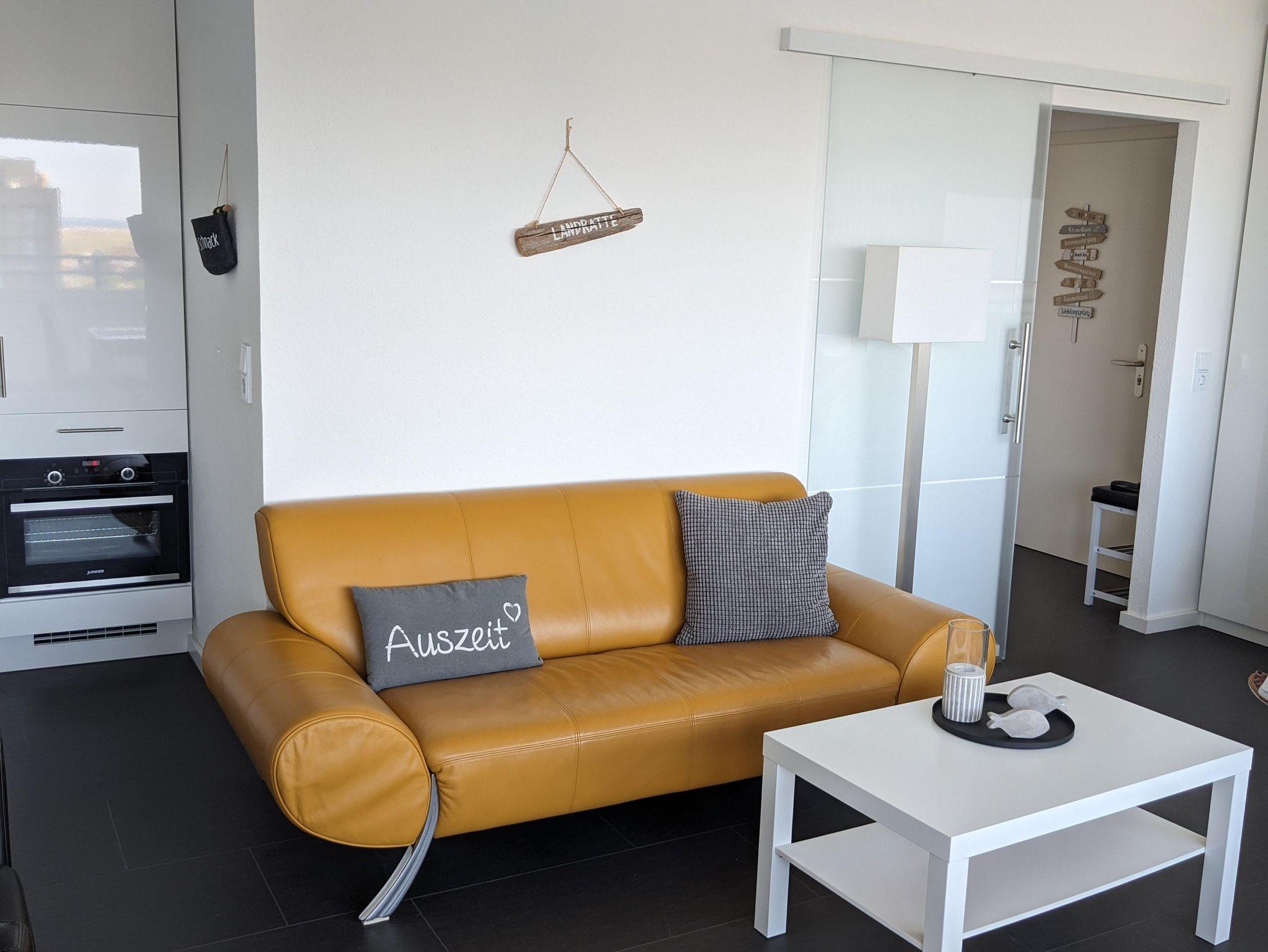 Die Ferienwohnung Meerblick 34 liegt im 4. OG und kann bequem mit einem Fahrstuhl erreicht werden. Sie ist ca. 41 qm groß und besteht aus: