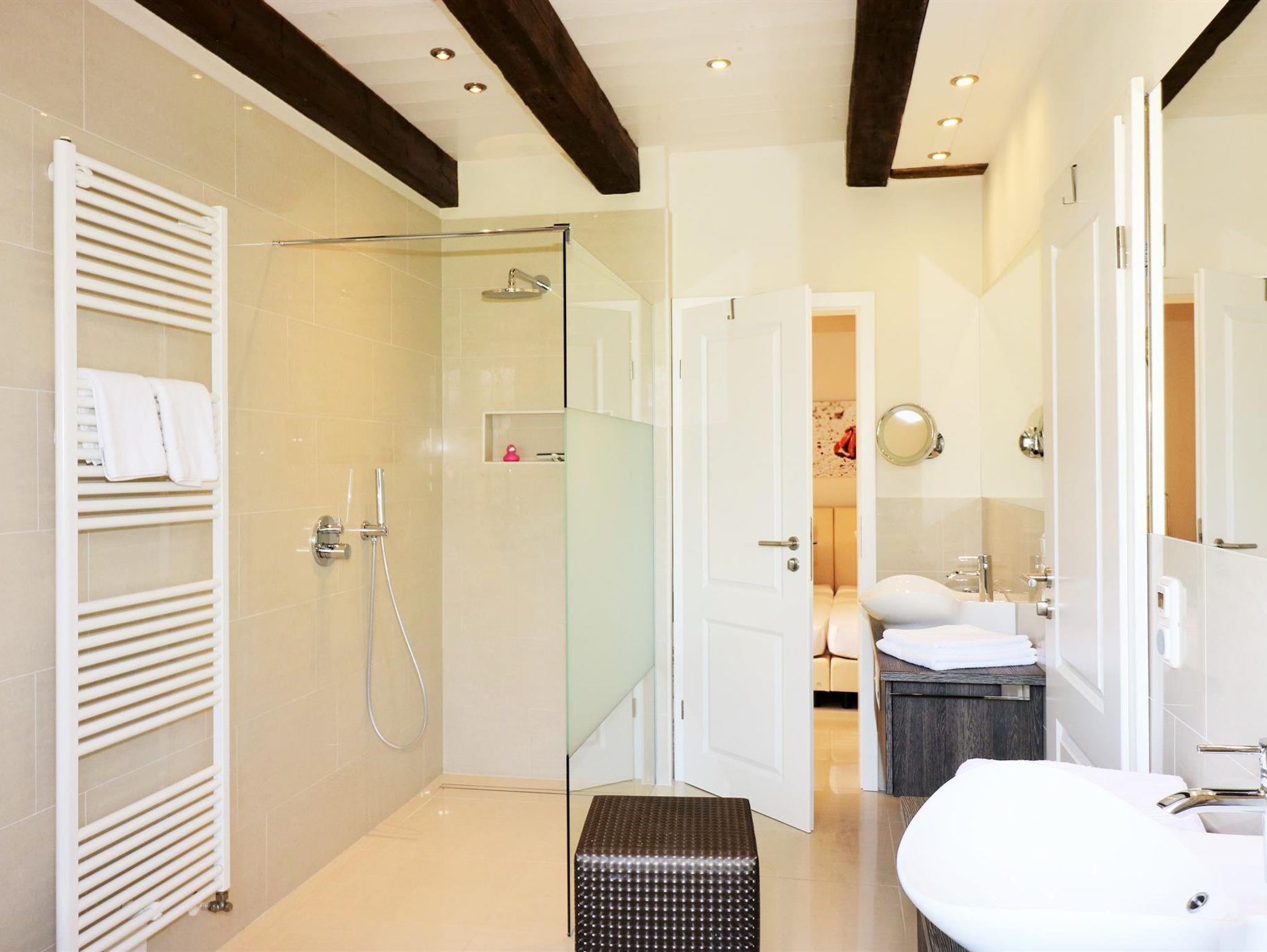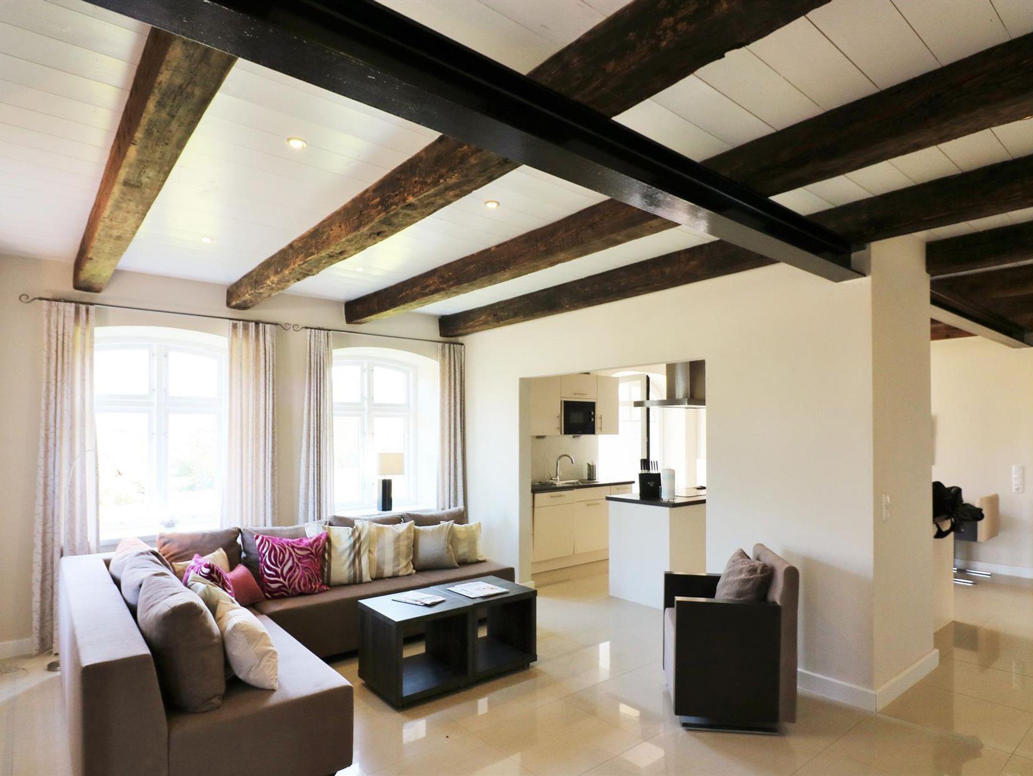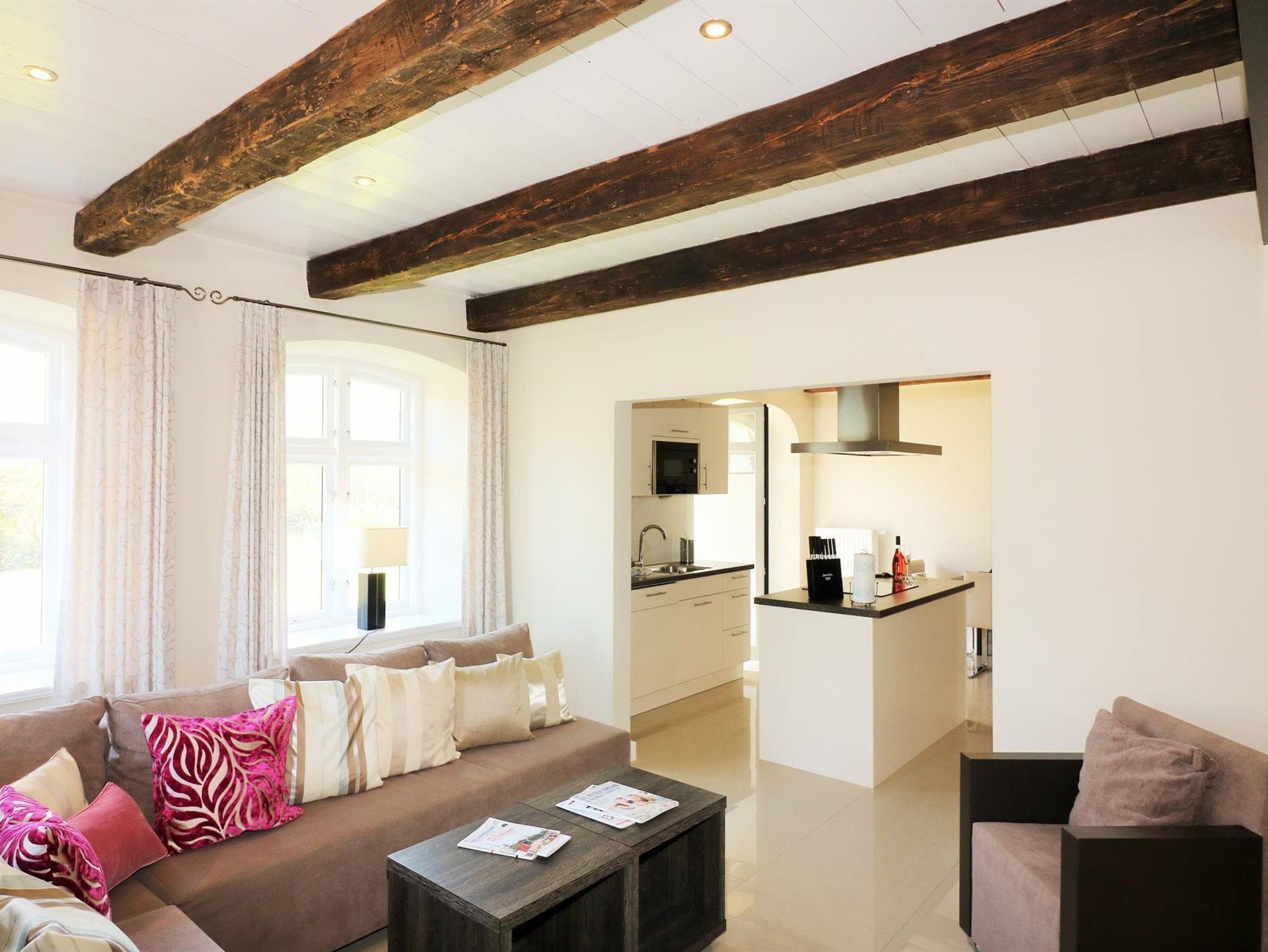 3-Zimmer Nichtraucher-Ferienwohnung für bis zu 4 Personen. Wohnzimmer mit SAT-TV und Blu-Ray/DVD-Player, Musikanlage mit CD-Player, Radio und Dockingstation für iPod, iPad oder iPhone. Badezimmer mit Regendusche, 2 Waschtische, Fön und beleuchtetem Schminkspiegel. Gäste-WC mit Waschmaschine und Trockner. Offene Küche mit Kochinsel, Carenfeld mit Backofen, komplette Küchenausstattung (Kaffeemaschine, Wasserkocher, Toaster, Geschirrspüler, Mikrowelle, Kühlschrank mit Gefrierfach) 1 Schlafzimmer mit Doppelbett, 1 Schlafzimmer mit 2 Einzelbetten und Schreibtisch, Bügelstation und Laptop-Safe. Terrasse mit Gartenmöbeln und Liegen Baby-Bett und Hochstuhl auf Anfrage. PKW-Stellplatz vorhanden. W-LAN kostenfrei verfügbar