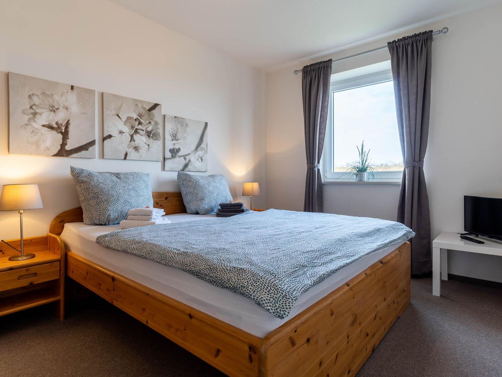 Die geschmackvolle Wohnung ist für 4 Personen ausgelegt und hat einen großzügigen Wohnraum mit einer Sitzecke, einem Flachbildfernseher, DVD Player, DVDs und einem Esstisch. Vom Wohnzimmer gelangen Sie auf den möblierten Balkon mit Blick auf den Deich.