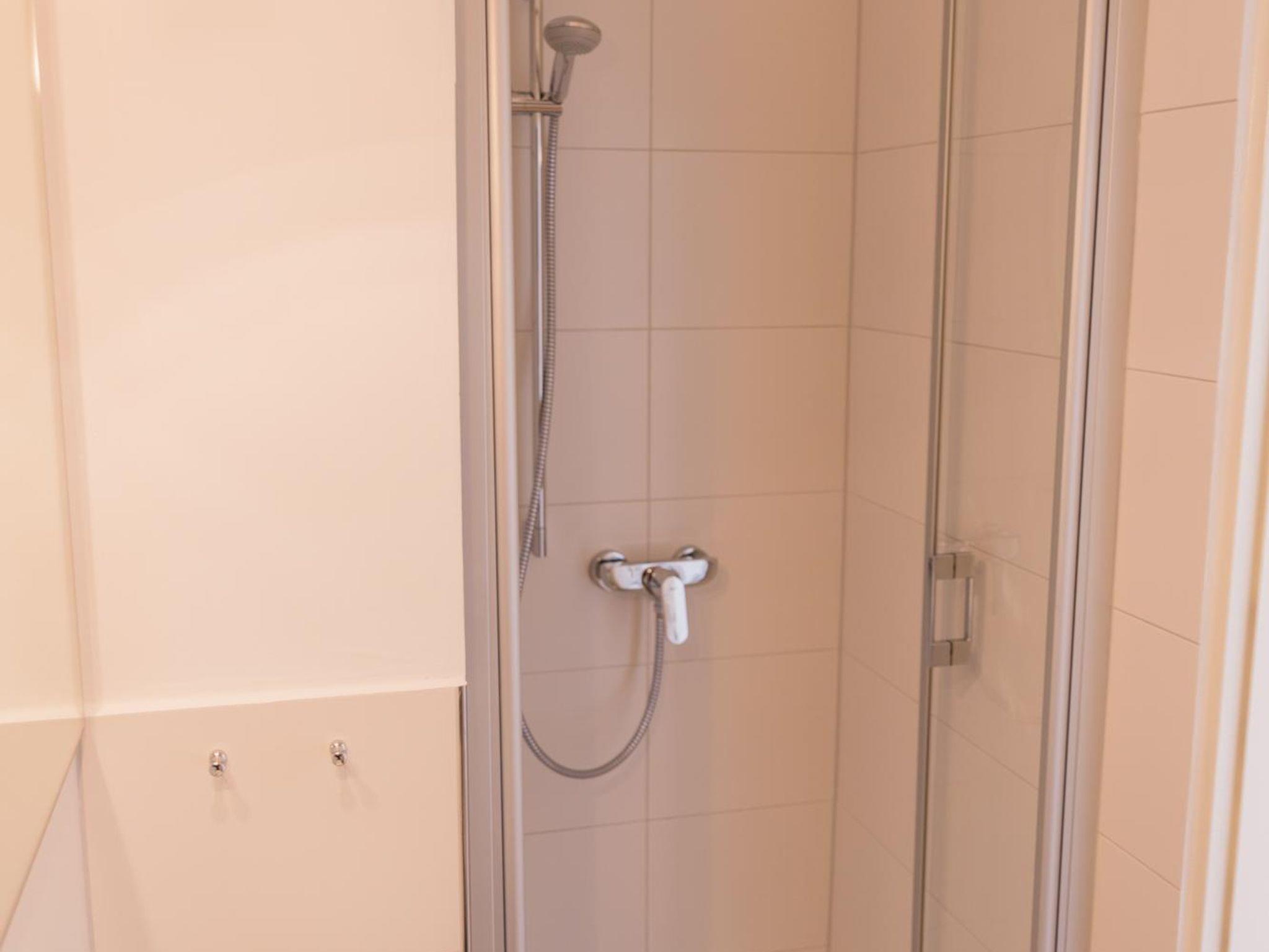 Im Obergeschoß befinden sich zwei Schlafzimmer, ein Doppelzimmer und ein Zimmer mit zwei Einzelbetten (90x200cm), und ein Duschbad.