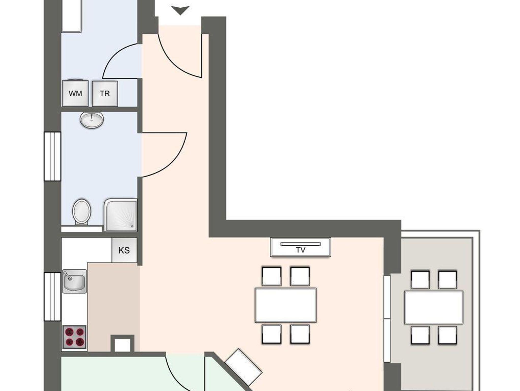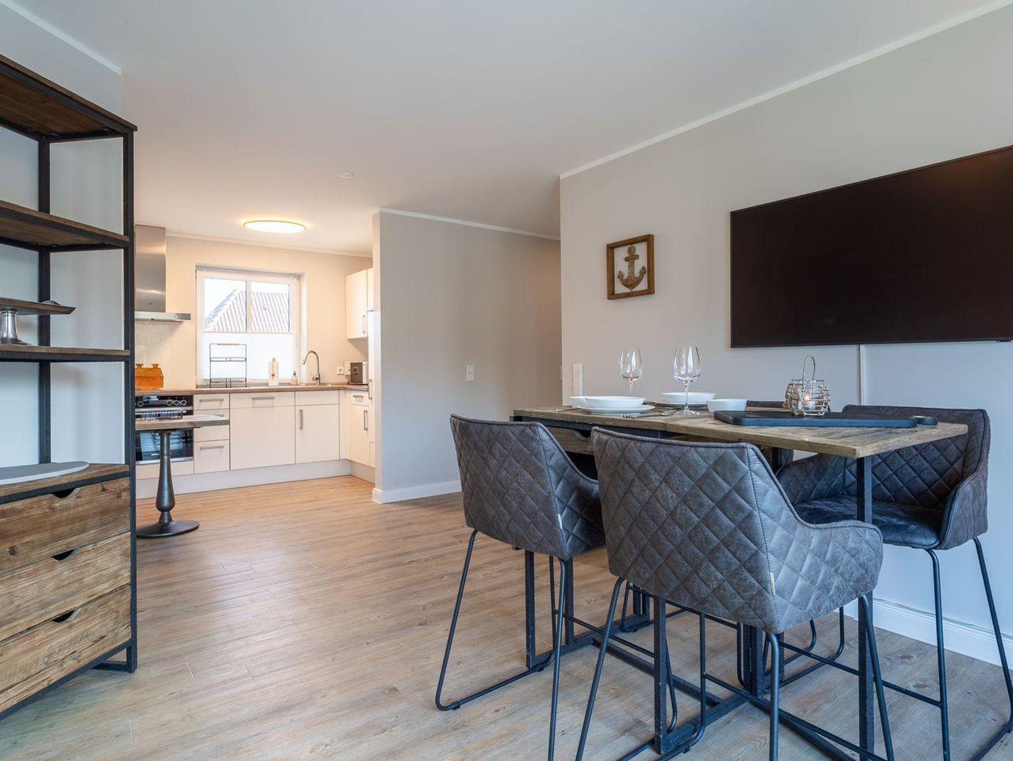 Diese moderne und stilvoll eingerichtete Wohnung bietet auf 60 m² genügend Platz für bis zu drei Personen. Der offene Wohnbereich verbindet Küche und Wohnzimmer harmonisch und ist der perfekte Ort, um sich nach einem erlebnisreichen Tag zu entspannen. Genießen Sie die Zeit bei einem gemütlichen Abendessen, das Sie in der voll ausgestatteten Küche zubereiten können. Hier stehen Ihnen moderne Geräte wie ein Cerankochfeld, Backofen, Kühlschrank mit Gefrierfach, Geschirrspüler, sowie kleine Küchengeräte wie Wasserkocher und Kaffeemaschine zur Verfügung.