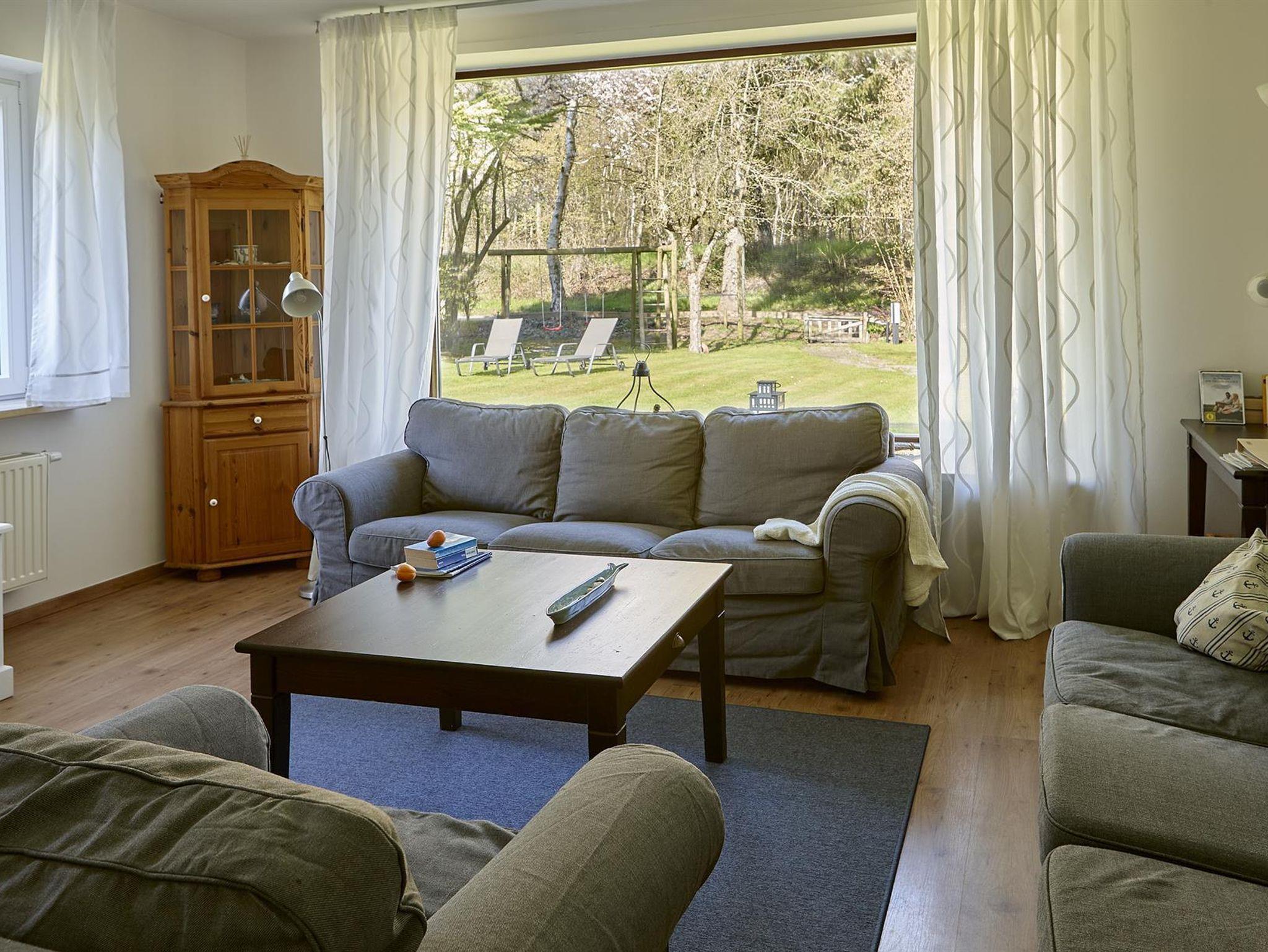 Tresen mit Barstühlen und ein riesiges Fenster mit Gartenblick verspricht Urlaub auf hohem Wohnniveau!