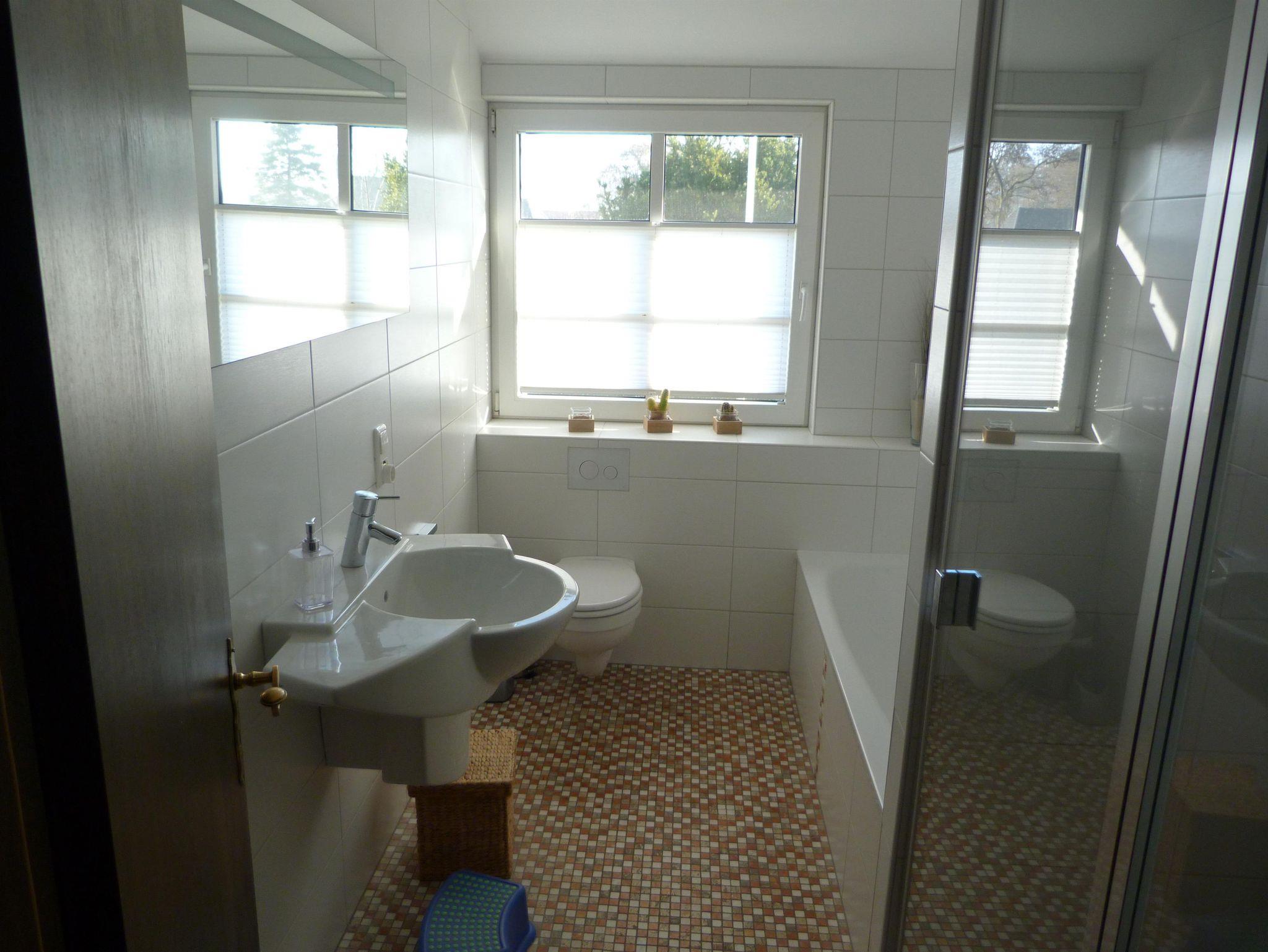 Die Schlafräume und ein Bad befinden sich im Obergeschoß, die Wohnräume, die Küche und ein weiteres Bad im Erdgeschoß. Im Obergeschoß ist noch eine Küchenzeile, so dass bei 2 Familien auch einmal getrennt voneinander gekocht und gegessen werden kann.