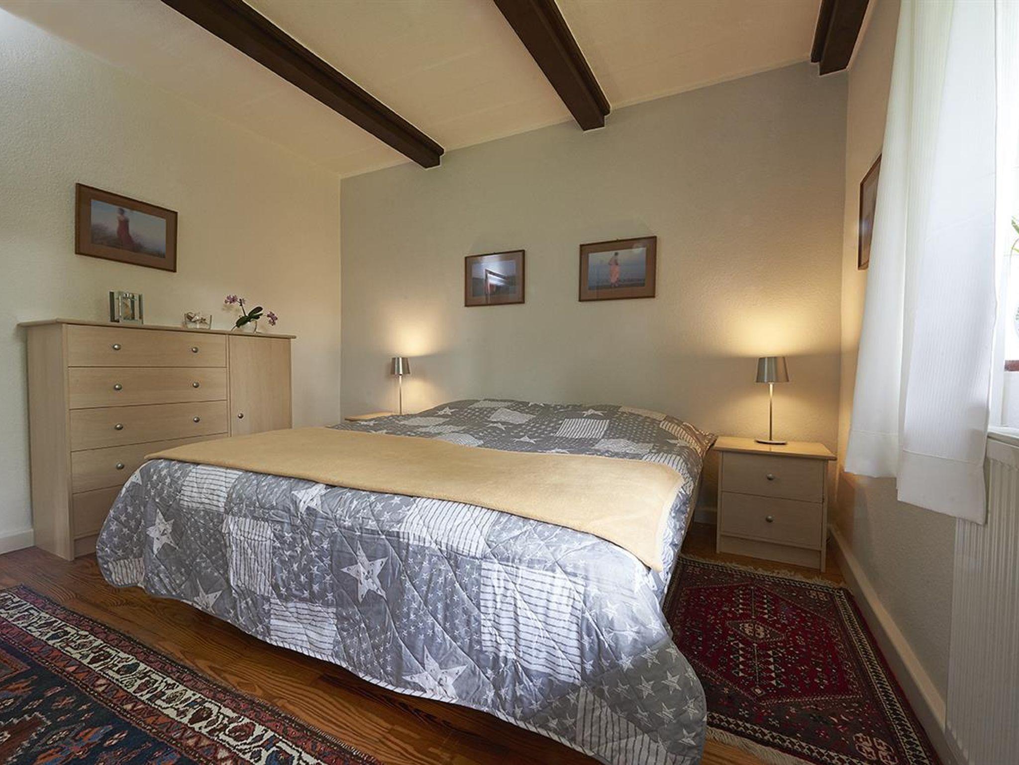 Dieses schöne Reetdachhaus mit 5 Zimmern bietet Platz für 6 Personen. Im unteren Bereich befinden sich ein großer Eingangsbereich, ein Wohn- Esszimmer mit Kaminofen, ein Elternschlafzimmer mit Doppelbett, sowie ein großes Duschbad von 2021. Das Wohnzimmer hat einen Flachbildschirm mit SAT Anlage. In der Küche befindet sich außerdem eine Waschmaschine. Drei weitere Schlafzimmer, eins mit einem Doppelbett, liegen oberen Stock, sowie ein weiteres modernes Duschbad.