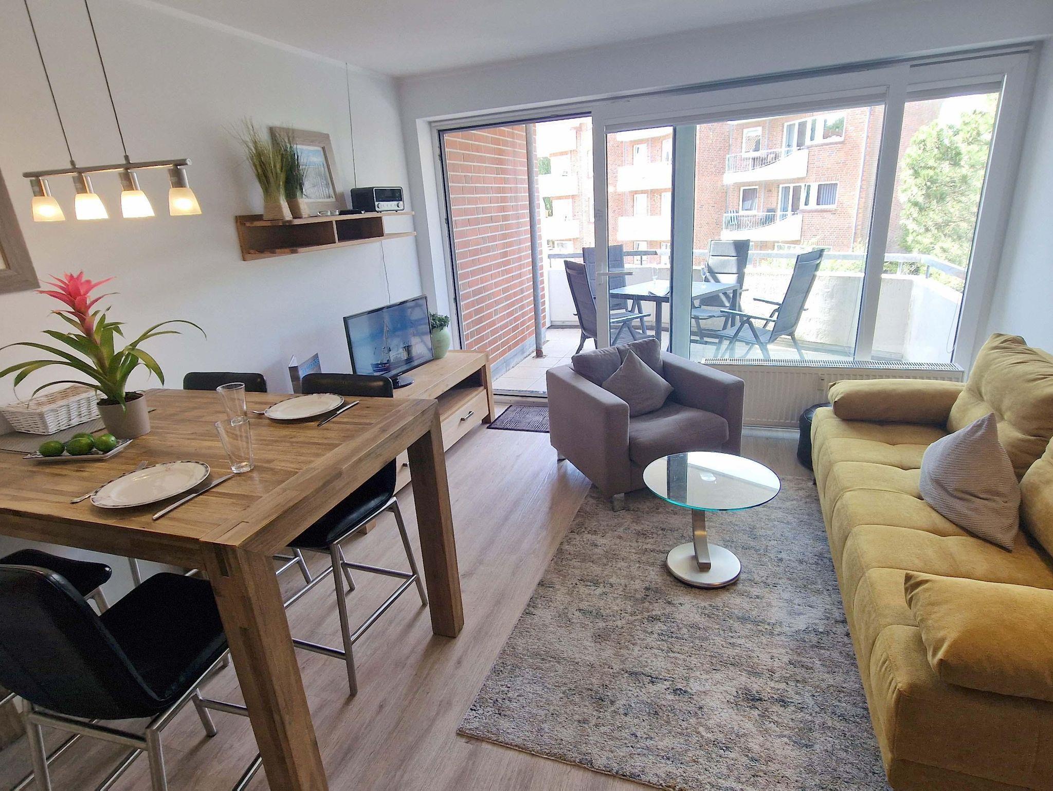 In der freundlich eingerichteten 2-Zimmer-Wohnung Pole Poppenspäler Nr. 07 im 2. Obergeschoss haben Sie ausreichend Platz für schöne Ferien zu zweit. Das Appartement wurde gerade komplett renoviert. Eine charmante, kleine Treppe führt Sie vom Wohn-Essbereich nach oben zum Schlafzimmer und dem modernisierten Bad. Auf den beiden West-Balkons fällt das Entspannen leicht.