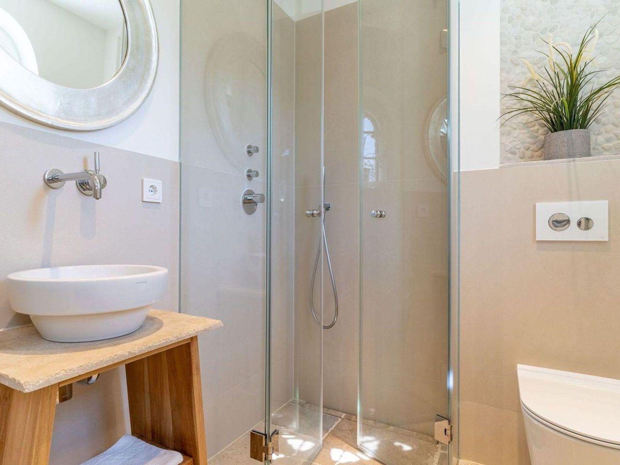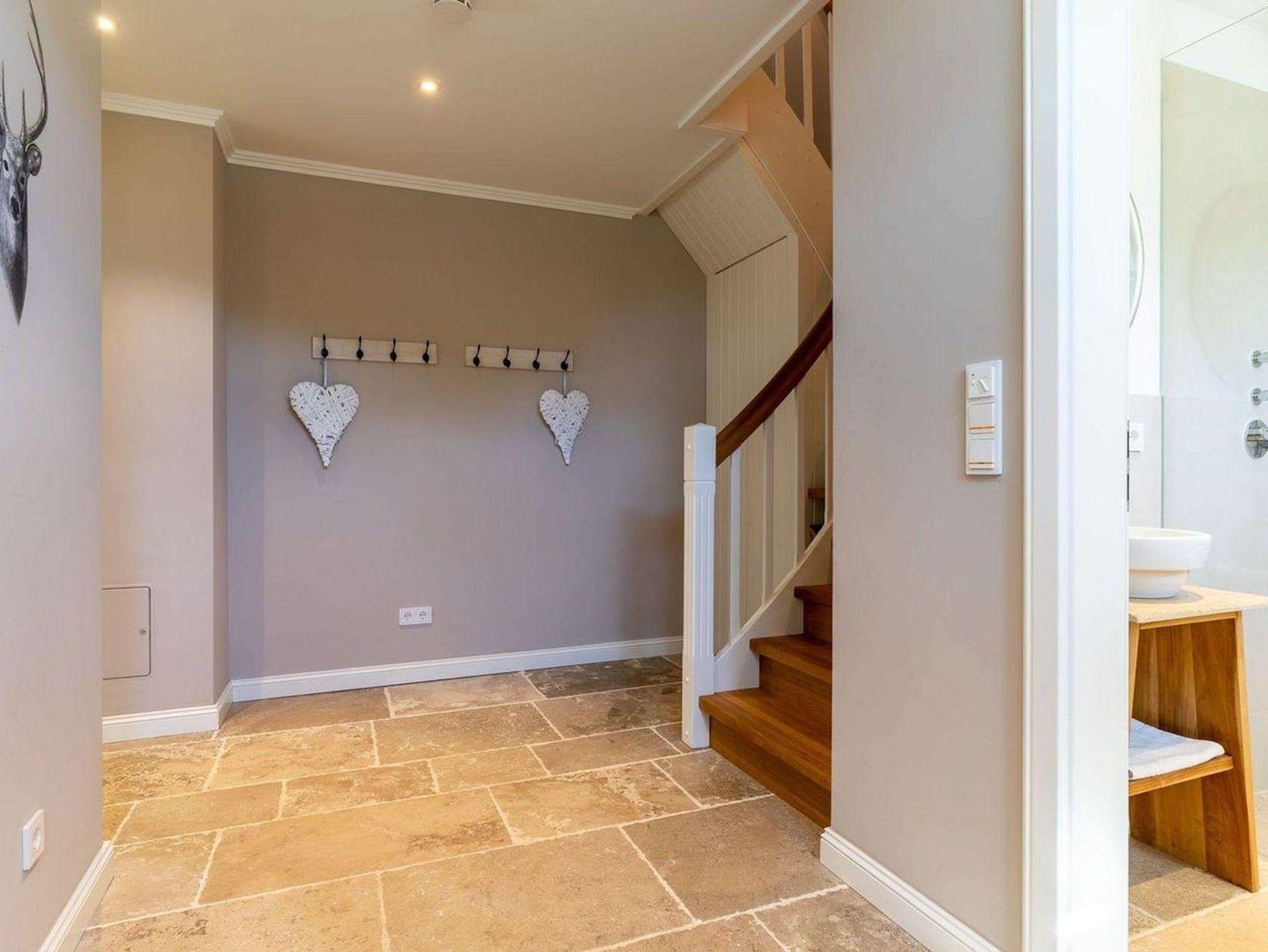Im Erdgeschoss befindet sich der lichtdurchflutete Wohnraum mit TV, einer offenen Küche sowie einem stilvollen Essbereich. Die Wohnräume sind mit exklusiven Möbeln ausgestattet. Die Küche verfügt über hochwertige Elektrogeräte. An den Wohnbereich schließen sich ein Flur, ein Hauswirtschaftsraum und ein Duschbad an. Das gesamte Erdgeschoss verfügt über sehr exklusive Fußbodenfliesen, die über eine Fußbodenheizung beheizt werden können. Über eine Holztreppe gelangt man in das Obergeschoss. Dieses verfügt ebenfalls über eine Fußbodenheizung. Ein Schlafzimmer ist mit einem Doppelbett plus TV ausgestattet und bietet jeden Komfort. Darüber hinaus befinden sich im Obergeschoss zwei weitere Schlafzimmer, mit je einem hochwertigen Einzelbett. Einbauschränke gewähren Ihnen hinreichend Ablageflächen. Ebenfalls befindet sich im Obergeschoss ein weiteres, geräumiges Bad mit Dusche und Badewanne. Dieses wunderschöne Haus lässt keine Wünsche offen und bringt Sie sofort in Urlaubsstimmung.