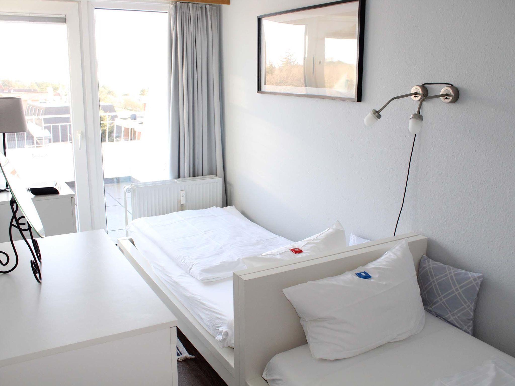 App.Nr. 66, Typ 6, IV.OG., Süd-Ostlage Schlafraum mit 2 Einzelbetten, 1 Schlafraum mit 1 Einzelbett und mit 2. Fernseher, Wohn-Schlafraum mit 2 Wandschrankbetten, PVC-Fußboden, Sitzecke, Essecke, Küchenzeile mit Geschirrspüler, Mikrowelle und Backofen, Dusche/WC, Durchwahltelefon, Kabel-TV, Balkon, Garagenstellplatz 66, Aufzug und Fahrradkeller. Rezeption, Brötchenservice, Schwimmbad, Sauna kostenpflichtig, kostenfreier Internetzugang (LAN-Germania). Bettwäsche wird einmalig bei Einzug gestellt. Handtücher können gegen Gebühr entliehen werden. NICHTRAUCHERWOHNUNG