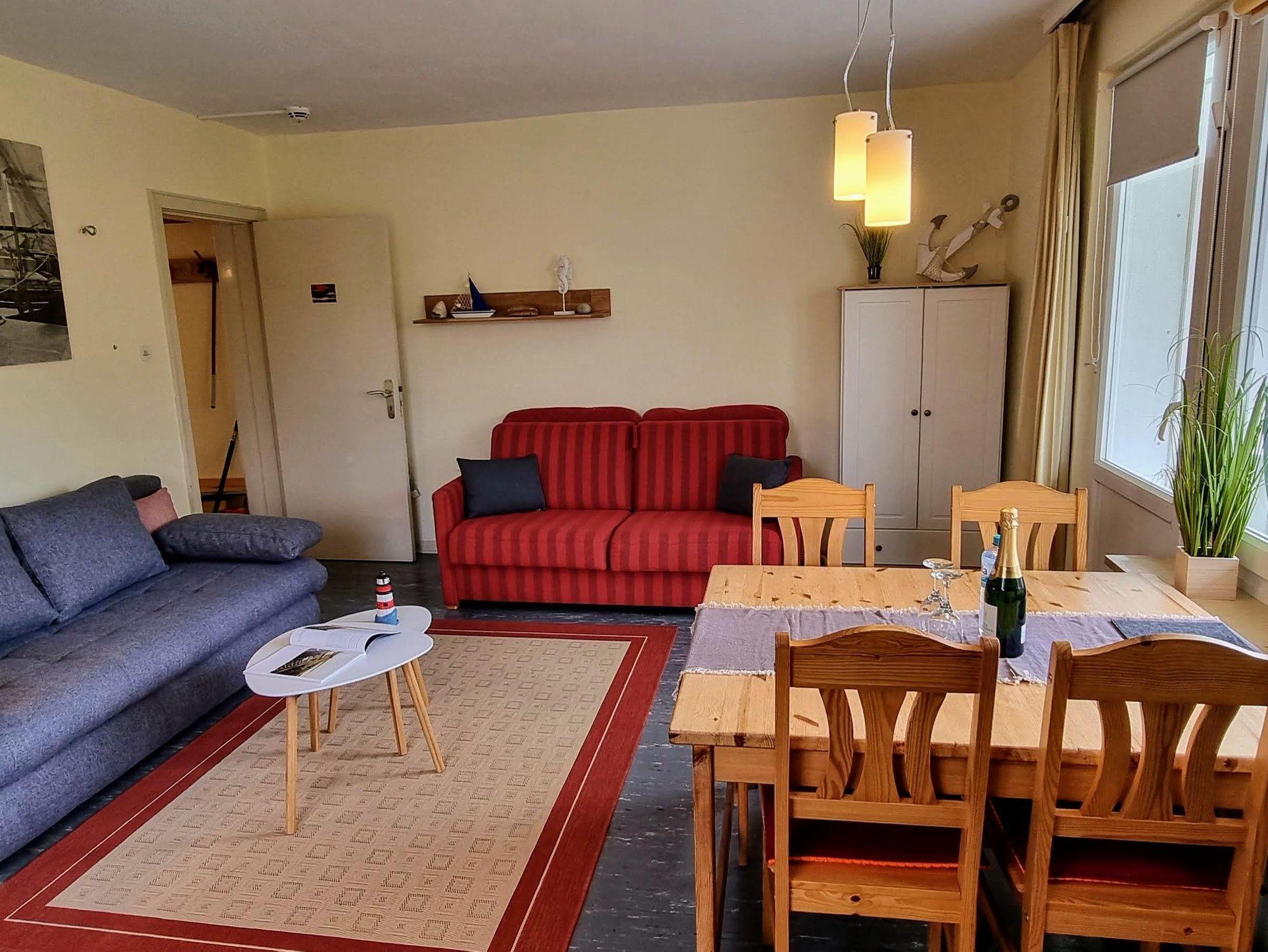 Die Ferienwohnung Dünenbake 14 ist sehr ruhig gelegen, angrenzend an dem Dünengürtel am Ende einer Sackgasse, aber dennoch zentral zu den Kureinrichtungen und zur Seebrücke gelegen. Die Wohnung ist zweckmäßig eingerichtet und ist für bis zu 4 Personen geeignet. Ca. 50 m ² große 2-Zimmer-Wohnung im 1. Stock. Wohnraum mit Zugang zum Balkon und einer Schlafcouch für 2 Personen, Esstisch mit Stühlen, Schlafzimmer mit Doppelbett 1,80x2,00 m, Kleiderschrank, Küche mit Mikrowelle (mit Grill), Kühlschrank mit Gefrierfach, Badezimmer mit Dusche,WC, Münz-Waschmaschine u. Trockner im Haus, Fahrstuhl vorhanden, Fahrradabstellplatz am Haus, keine Tiere, Nichtraucher