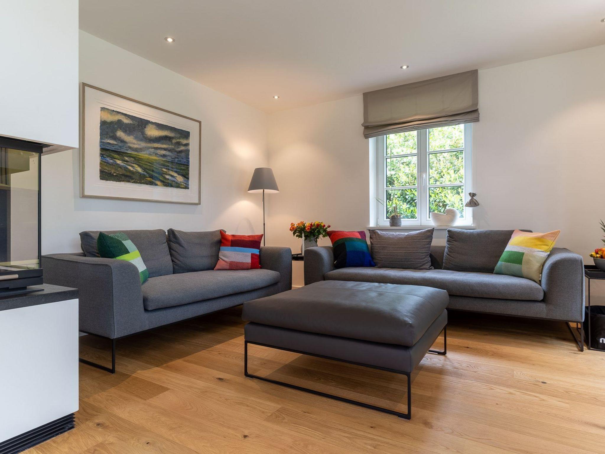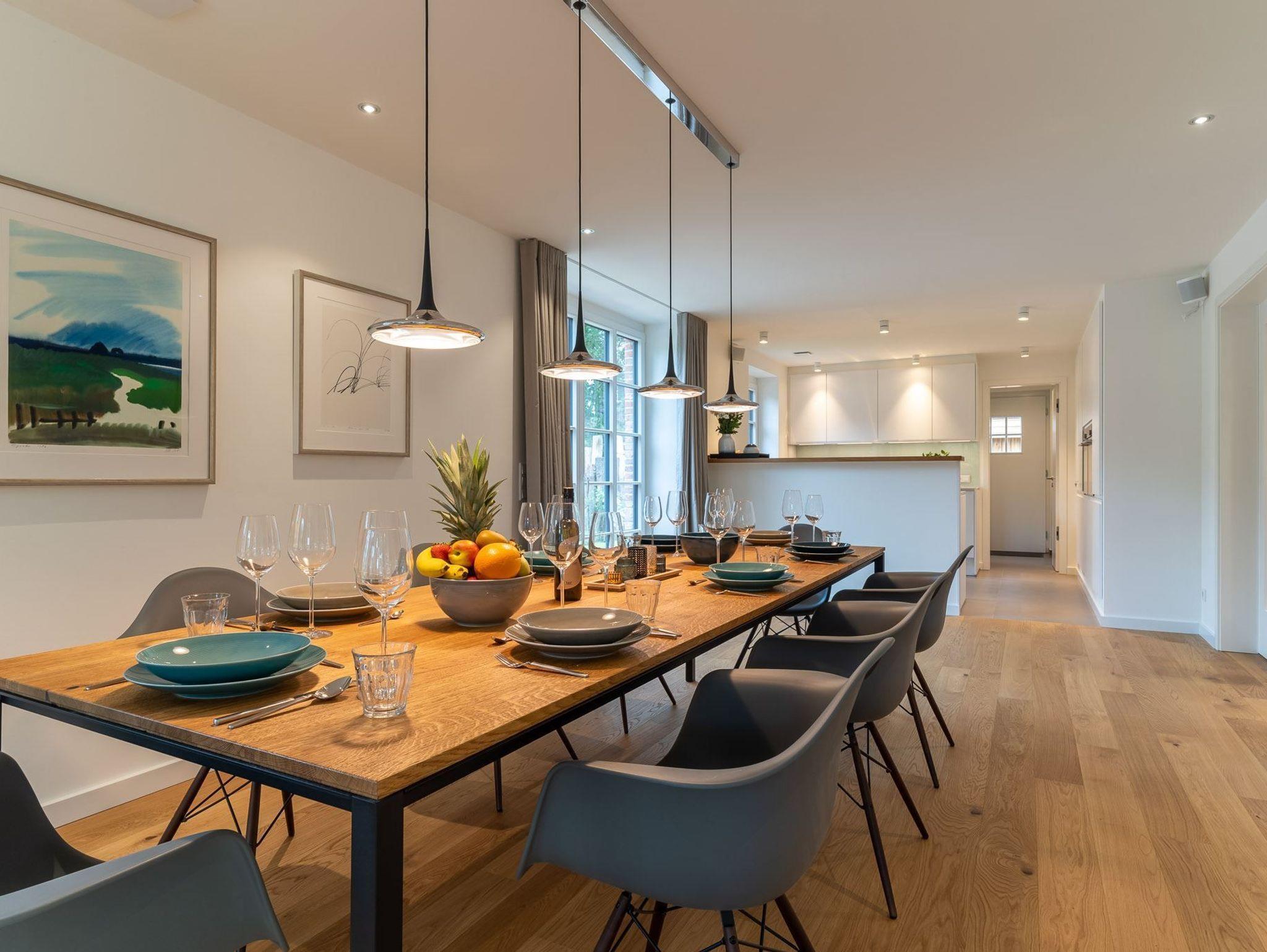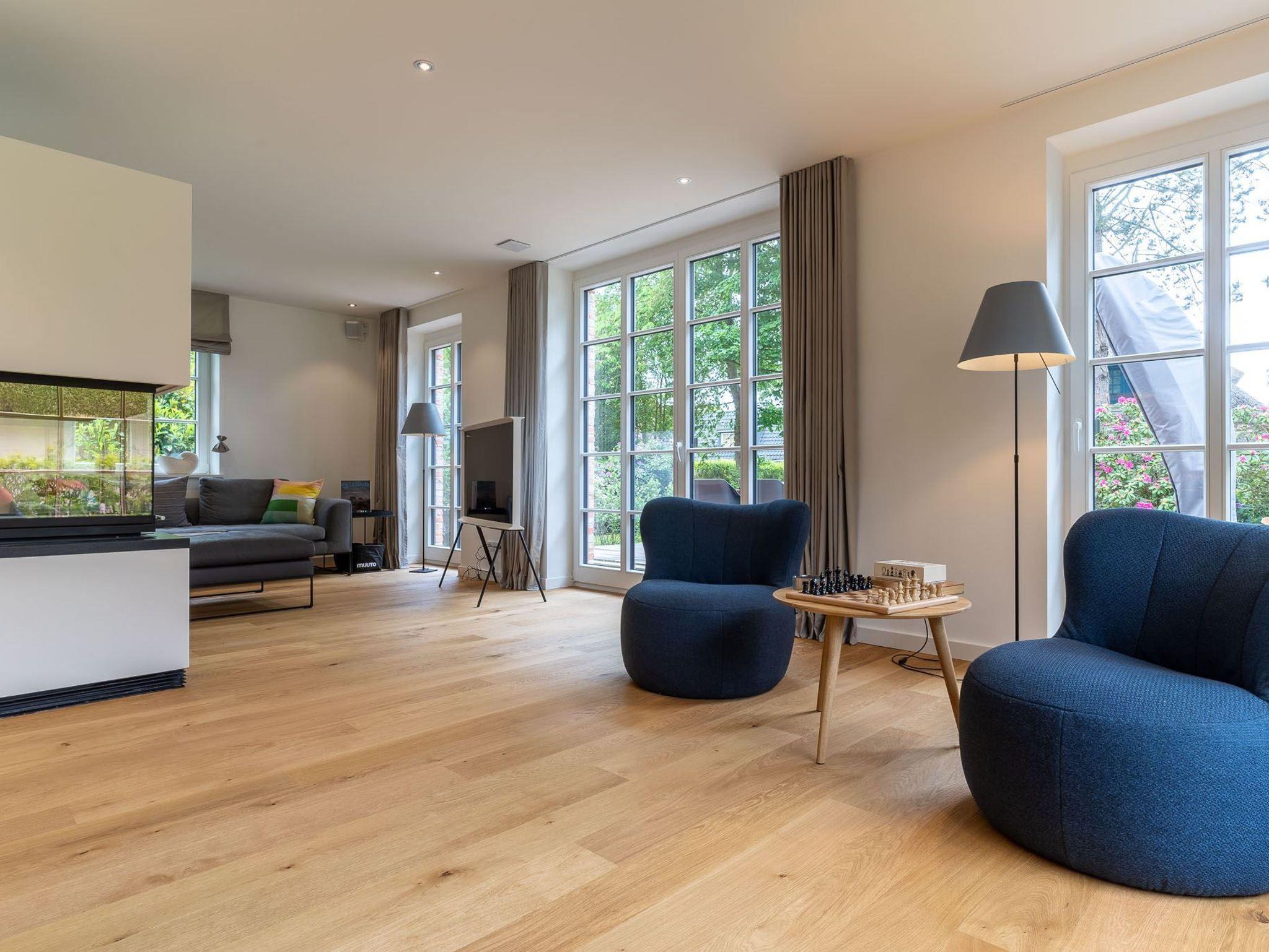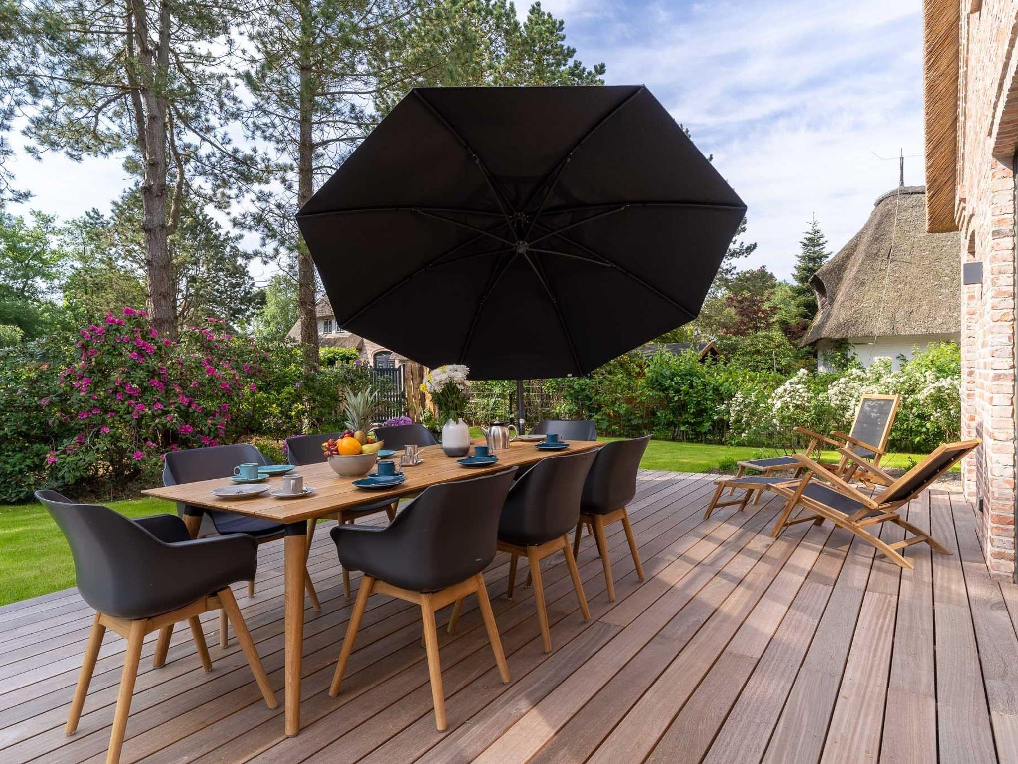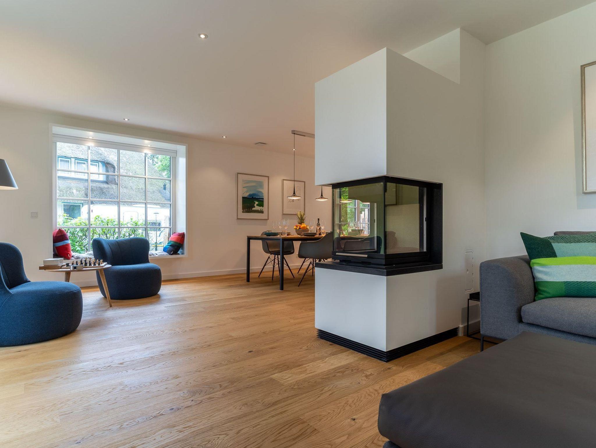 Exklusives, mit 5 DTV-Sternen ausgezeichnetes Prestigeobjekt - genießen Sie auf ca. 200 qm unvergleichlichen Luxus der Extraklasse. Das Reetdachhaus bietet mit 5 Zimmern auf 2 Ebenen, 2 Terrassen und Garten, Urlaubsräume für bis zu 8 Personen. Ein Juwel mitten im Stillen Dorf, eine von St. Peter-Ording´s Topadressen, qualitativ hochwertig und luxuriös ausgestattet, lädt das großzügige ?Hideaway Hoher Himmel?, der Name leitet sich aus dem sensationellen Eingangsbereich ab, zum Wohlfühlen ein, ob am offenen, von drei Seiten sichtbaren Kamin im Wohnzimmer, beim Entspannen im Spa, beim geselligen Beisammensein in dem 60 qm großen Wohn-Essbereich oder beim Kochen in der modernen, top ausgestatteten Küche. Umgeben von Musik über das Sonos Soundsystem, Streamingdienste, Smart TV, Fußbodenheizung erleben Sie einen unvergesslichen Urlaub. Im Außenbereich runden 2 große Terrassen und der liebevoll angelegte Garten den Zauber dieses Ferientraumes ab.