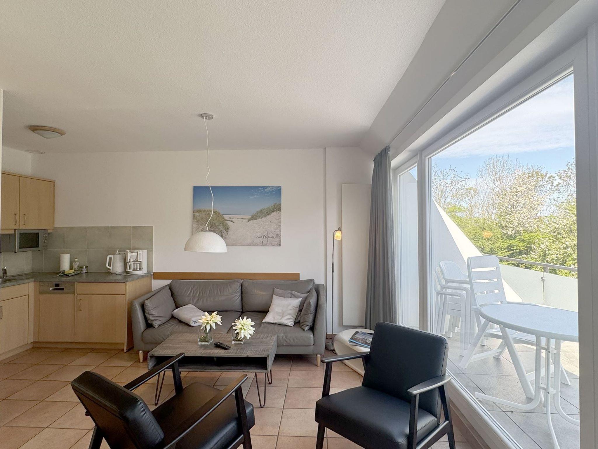 Die Wohnung 13 in der Anlage Luna I liegt im Obergeschoss des Hauses. Sie ist 75qm groß und geeignet für bis zu 5 Personen. Der Eingangsbereich ist mit einer Garderobe ausgestattet. Es gibt zwei Schlafzimmer mit Doppelbetten (180x200cm, getrennte Matratzen). In einem der beiden Schlafzimmer befindet sich zusätzlich ein Einzelbett für eine fünfte Person. Des weiteren sind zwei Duschbäder mit Waschbecken und WC vorhanden. Der Wohn-Essbereich verfügt über eine offene, umfangreich ausgestattete Küche. Im Wohn-Esszimmer befinden sich ein Esstisch sowie etwas separiert davon ein großzügiger, gemütlicher Sitzbereich mit Fernseher. WLAN steht kostenlos zur Verfügung. Die Einrichtung ist modern und hochwertig. Die gesamte Wohnung ist durch ihren Bodenbelag mit Designerparkett und Fliesen geeignet für Allergiker. Vom Wohnbereich aus gelangen Sie auf den Balkon der Wohnung, der mit Gartenmöbeln ausgestattet ist und einen Blick in die wunderschöne Grünanlage mit Obstwiese bietet.