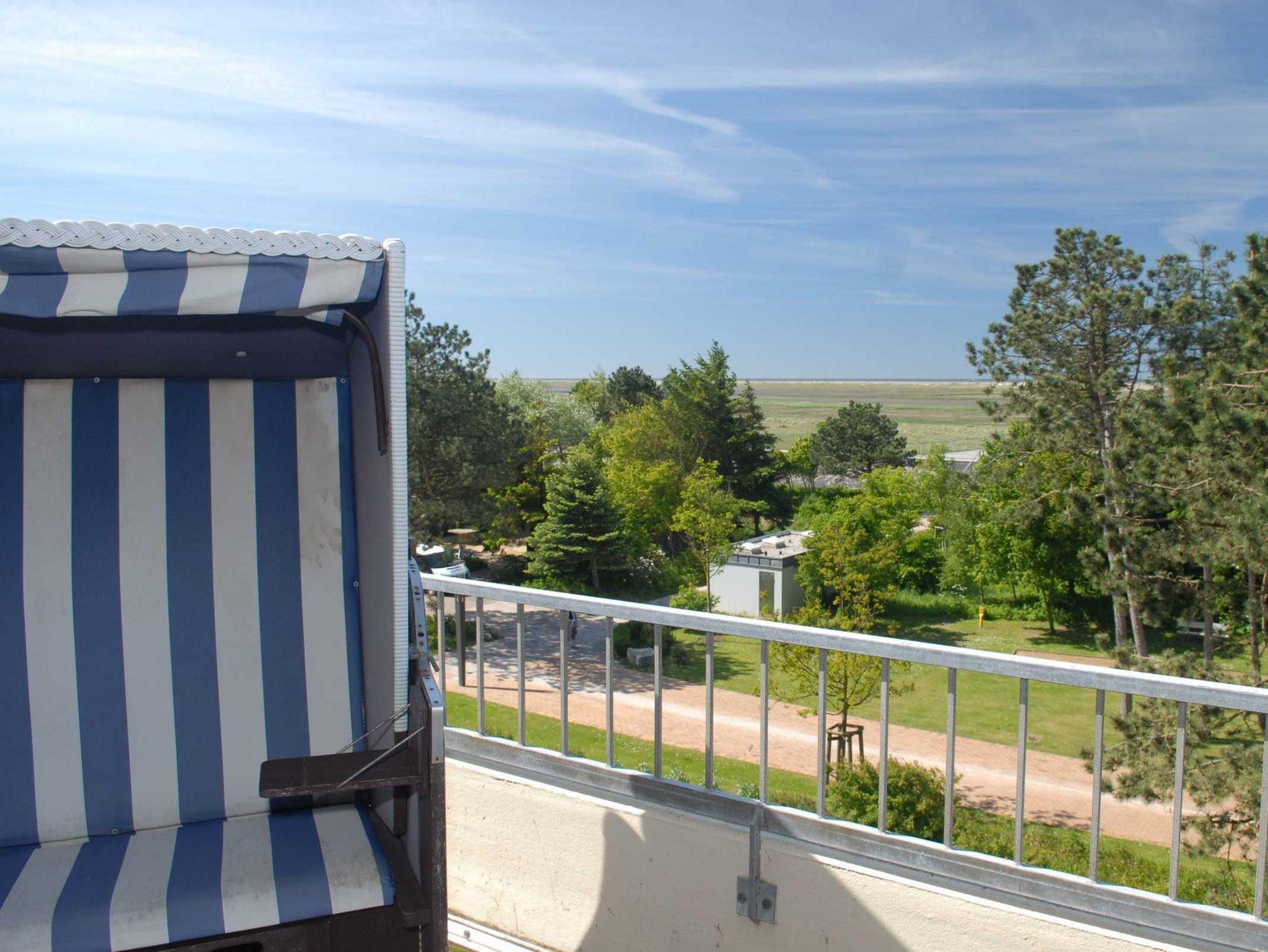 Der Süd-West-Balkon bietet durch die Bäume einen schönen Blick auf das Meer und lädt zum Entspannen in der frischen Luft ein.