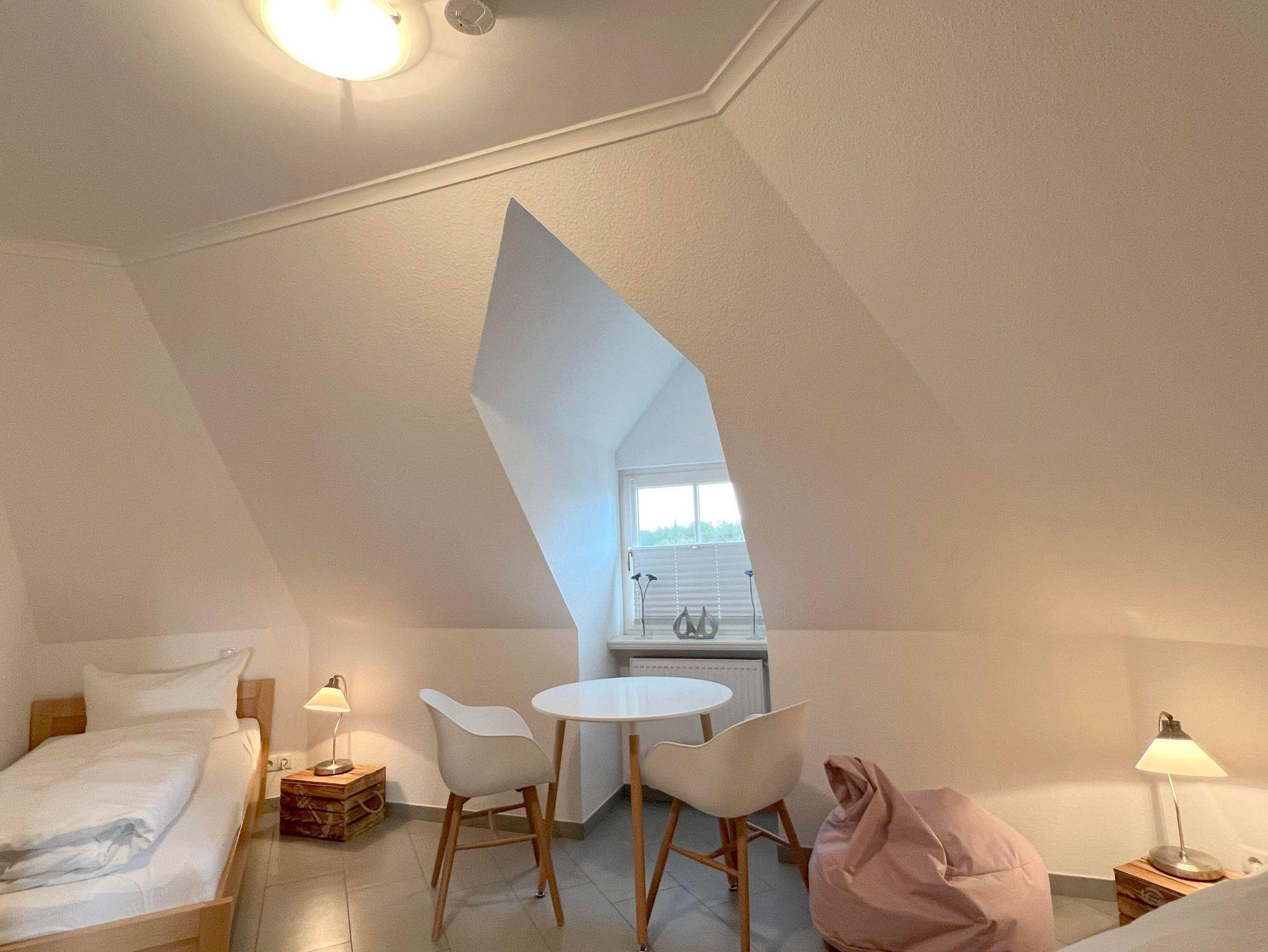 Moderne, exklusive mit 4 DTV Sternen ausgezeichnete Ferienwohnung im 2.Obergeschoss eines Geschäftshauses mit teilweise Meerblick und großer Dachterrasse für 2 - 4 Personen mitten im Zentrum.