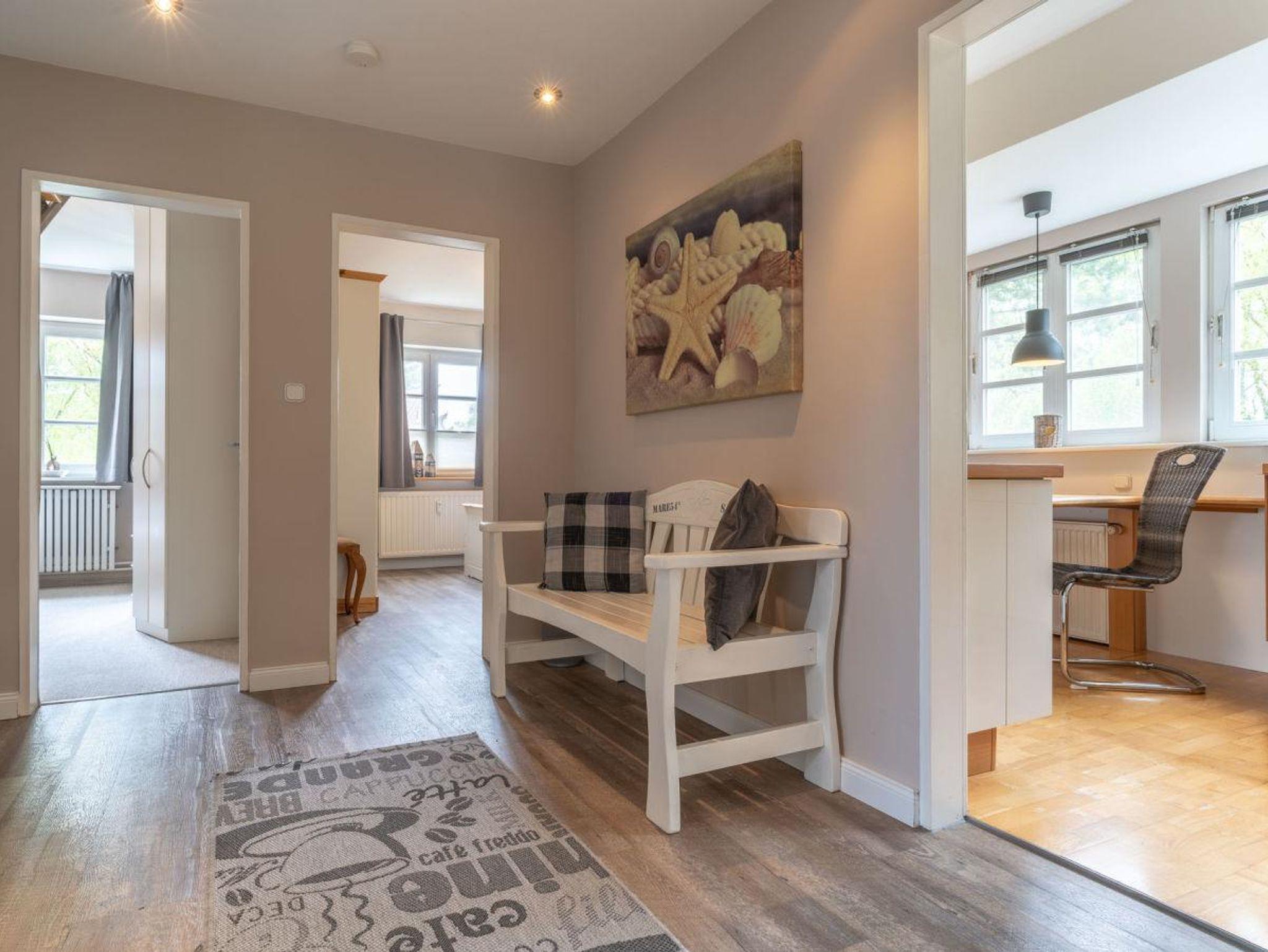 Die Ferienwohnung mit großem Garten befindet sich im ersten Obergeschoss eines Zweifamilienhauses in ruhiger Sackgassenlage im Ortsteil Dorf. Besonders hervorzuheben ist unsere 45 qm große Dachterrasse, uneinsehbar mit wunderschöner Aussicht auf den herrlichen Garten und den angrenzenden Kiefernwald.