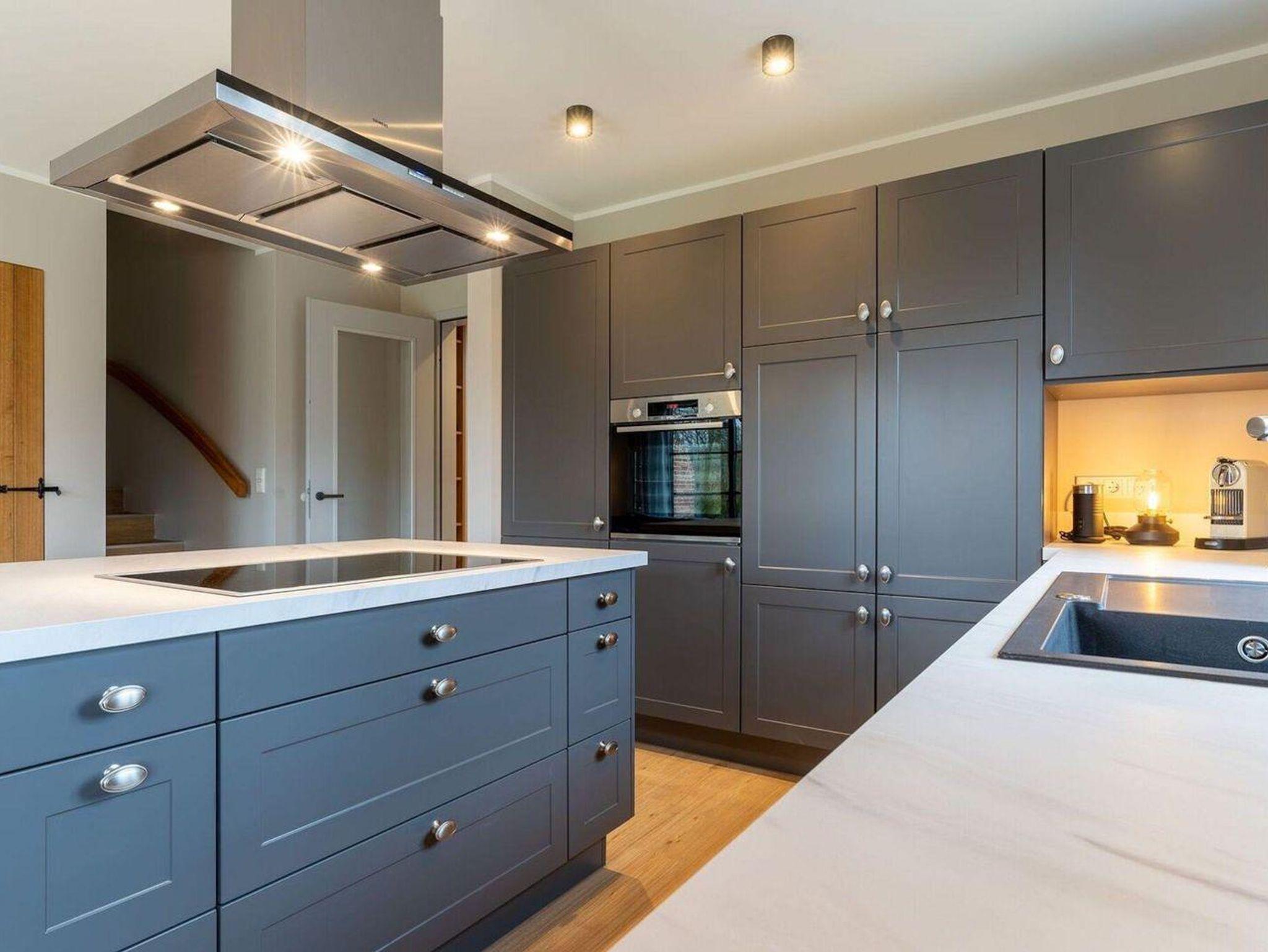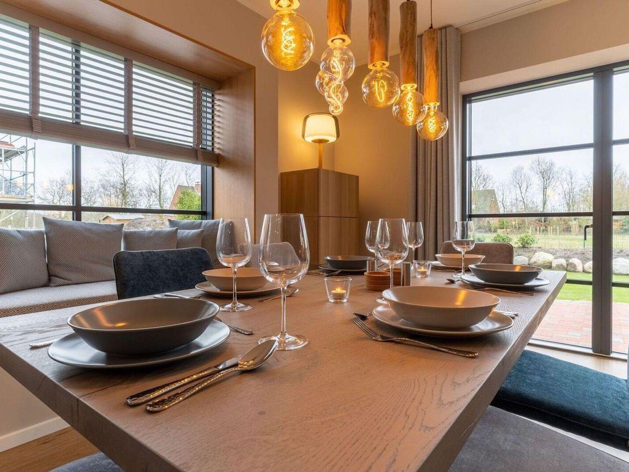 Im Erdgeschoss erwartet Sie ein lichtdurchflutetes Wohnzimmer mit Sofalandschaft, einer offenen Küche im Landhausstil sowie einem integrierten Esszimmer mit hochwertigen Christine Kröncke Möbeln. Besonderes Highlight im Wohnbereich ist die gemütliche Sitzbank direkt im Erkerfenster, die ganz sicher zu einem Ihrer Lieblingsplätze im Haus wird, um ein gutes Buch zu lesen oder den ersten Kaffee am Morgen zu genießen. Vom Flur mit Garderobe, welche ausreichend Platz für Jacken und Schuhe bietet, gelangen Sie in ein Duschbad, sowie in den Hauswirtschaftsraum mit Waschmaschine und Trockner. Eine vom Wohnzimmer aus abgehenden Treppe führt ins geräumige Obergeschoss. Zwei Schlafzimmer mit je einem Boxspring-Doppelbett (180x200 m) sind ausgestattet mit TV und großen Kleiderschränken. Ein drittes Schlafzimmer besitzt zwei große Boxspring-Einzelbetten (100x200 m) und lässt Ihre Kinder, die Großeltern oder liebe Freunde gemütlich und ruhig schlafen. Ein zweites vollausgestattetes Badezimmer im OG, mit offener Dusche und zwei einzelnen Waschbecken runden das hochwertige Hauskonzept ab und lassen keine Wünsche offen.