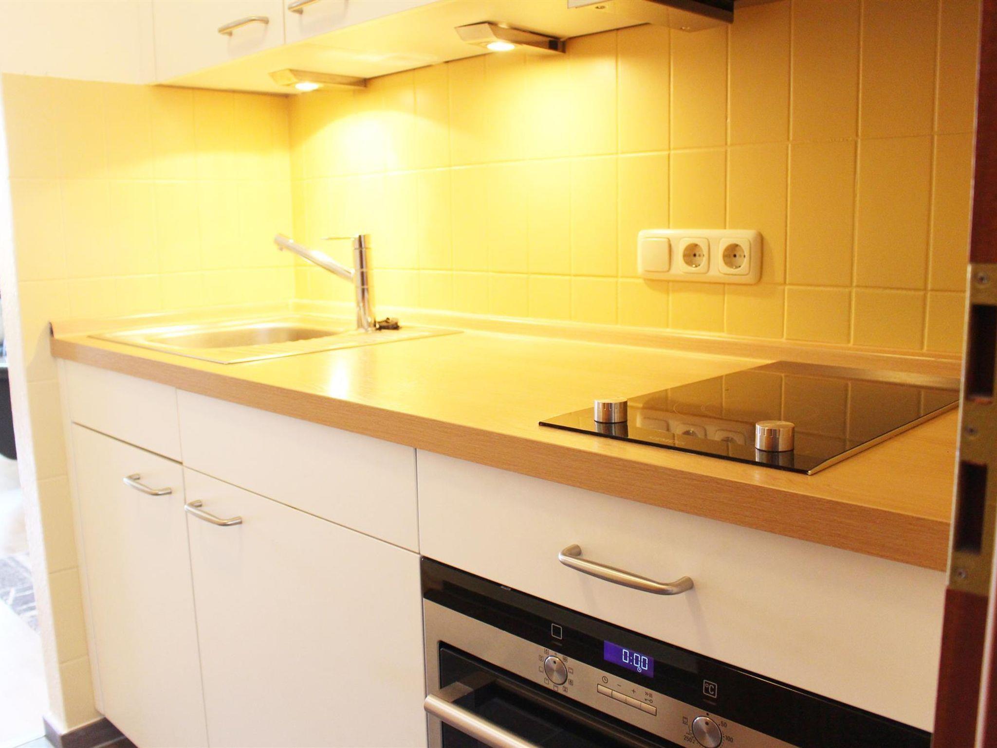 Vollständig ausgestattete Küche (u.a. mit Ceran-Kochfeld, Backofen usw.), Dusche/WC, Flur sowie ien großer möblierter Balkon. Zur Wohnung gehört der Pkw-Stellplatz Nr. 77 in der Tiefgarage. Waschmaschine und Trockner im Haupthaus vorhanden. Unterstellmöglichkeit für Fahrräder. Hunde nach Absprache erlaubt!