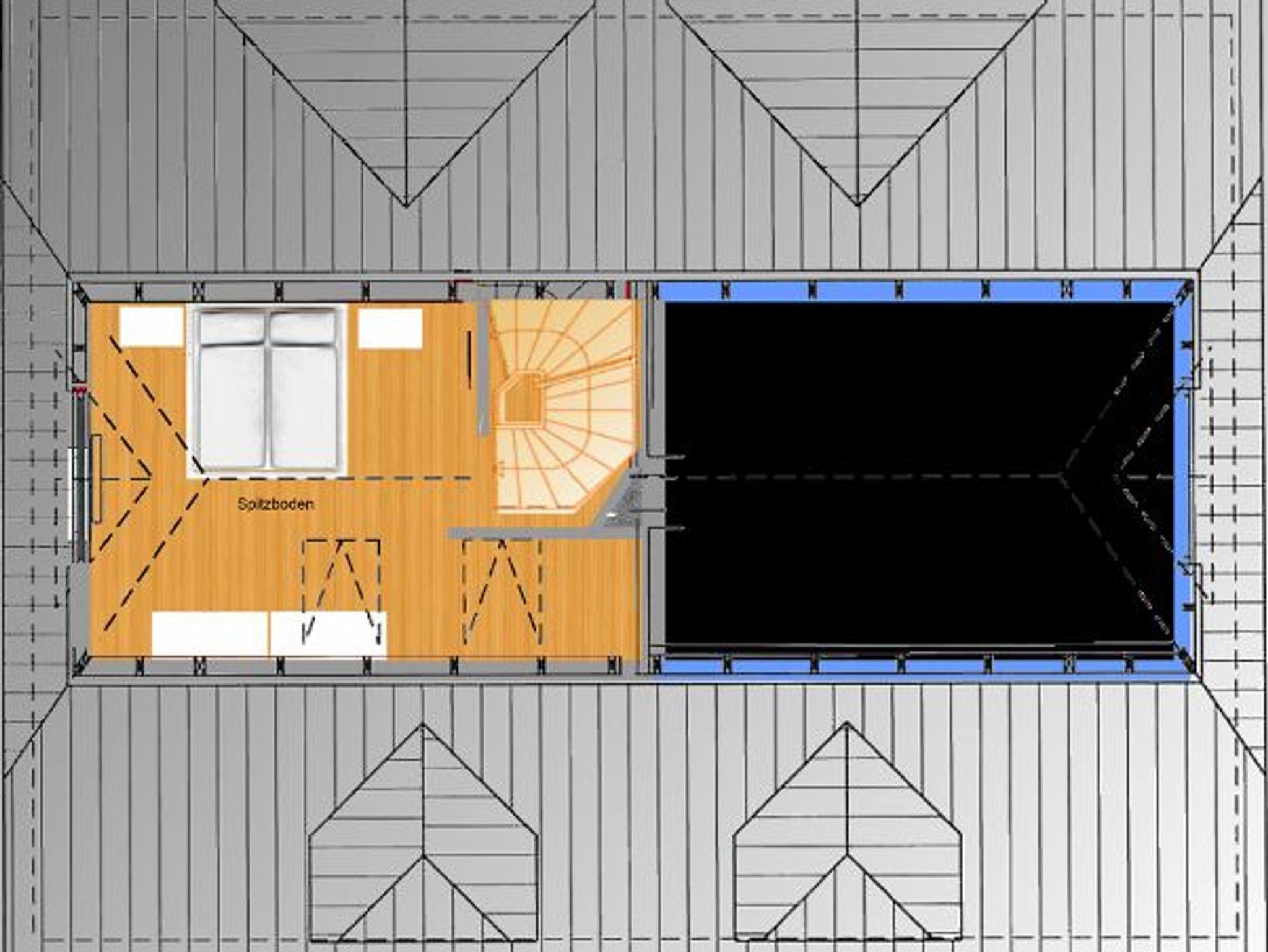 Vom dritten Schlafzimmer im Dachgeschoß haben Sie einen herrlichen Blick aus den Velux-Fenstern über den Deich und dem Ordinger Strand bis zur Nordsee.