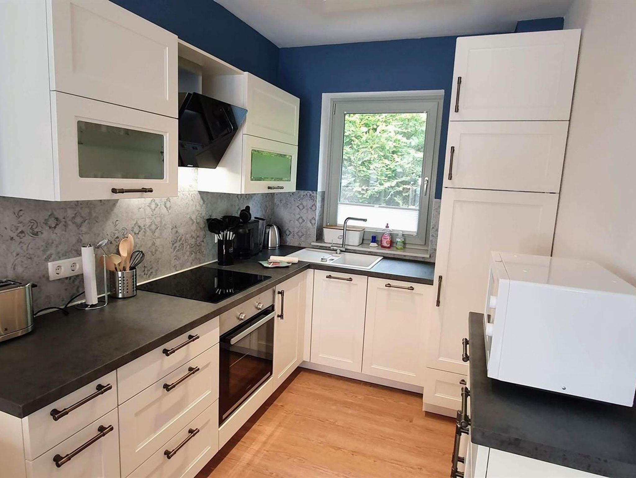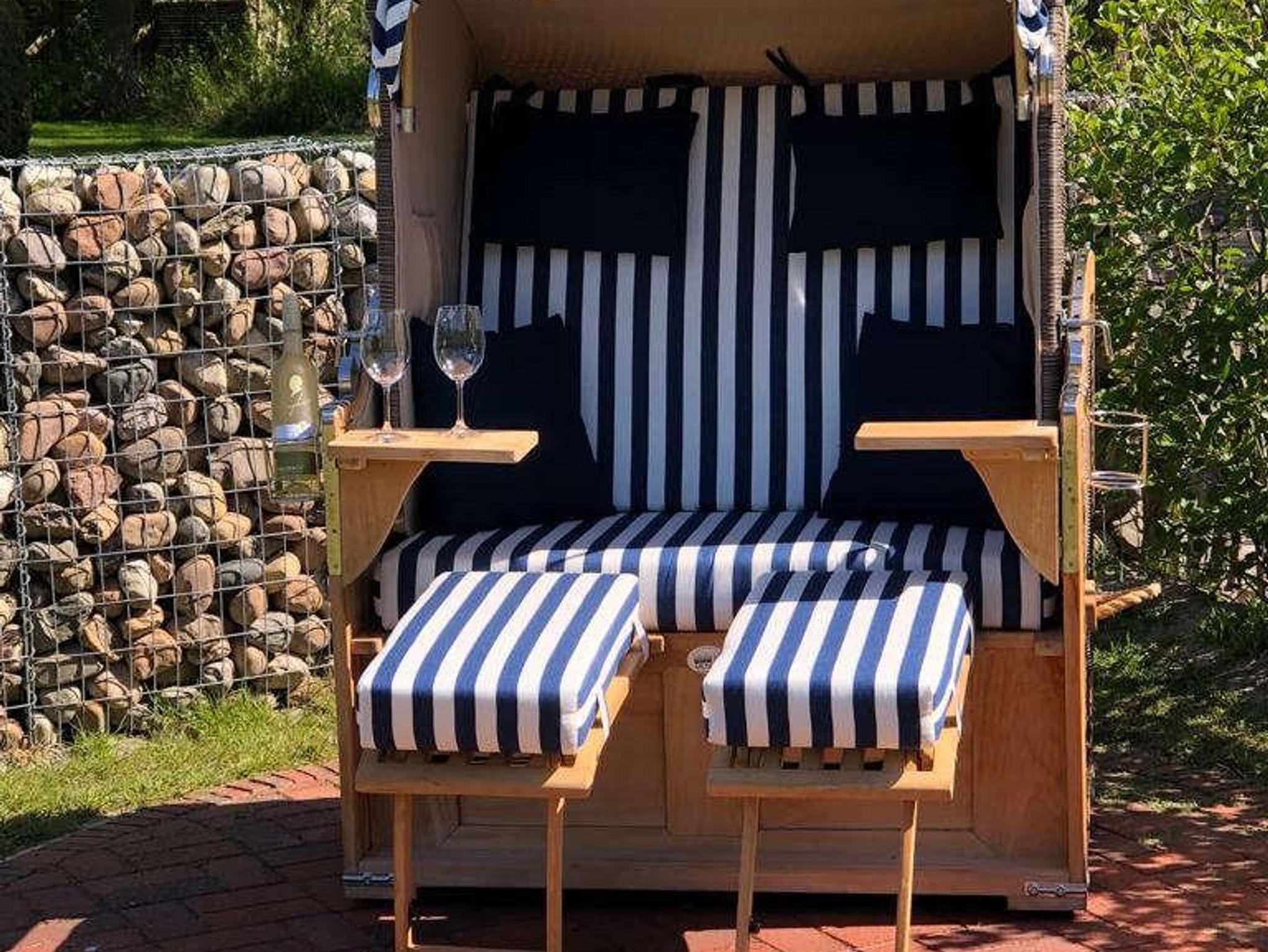 Wohnzimmer mit elektrisch verstellbarer Couch, TV mit WLAN, Internetradio mit CD + USB, Freies WLAN, direkter Zugang zur windgeschützten, möblierten Gartenterrasse nach Südwesten. Offene Küche mit Backofen, Mikrowelle, Kühlschrank mit Gefrierfach und Geschirrspüler.