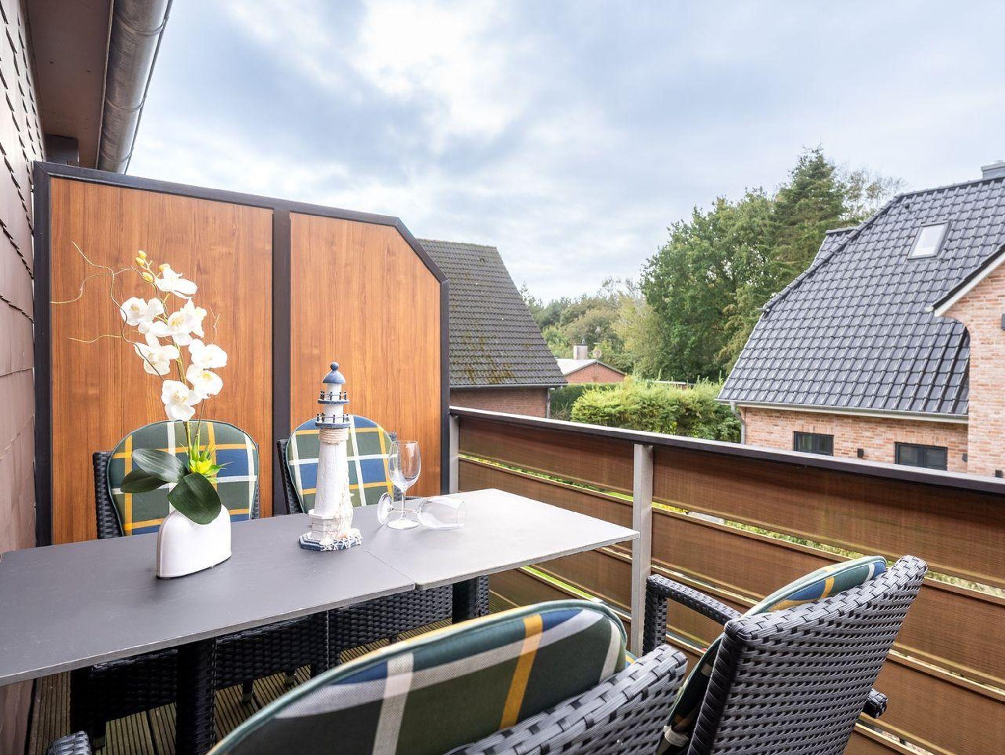 Die 45m² große Ferienwohnung welche im Jahr 2020 vollständig saniert wurde, liegt im Obergeschoss und bietet bis zu 4 Personen Platz für einen unvergesslichen Urlaub in St. Peter-Ording. Durch die Lage und Ausstattung ist die Ferienwohnung besonders familienfreundlich, Kinder sind hier herzlich willkommen. Die Ferienwohnung verfügt über einen nach Südwesten hin ausgerichteten, vollständig möblierten Balkon, der Abendsonne für ein herrliches Beisammensein bietet. Auch Urlaub mit Hund in St. Peter-Ording ist hier möglich. Das moderne Wohnzimmer ist hell und freundlich gestaltet. Zur Ausstattung gehören eine komfortable Couch und der große Esstisch, an dem die ganze Familie Platz findet. Die Couch lässt sich zum komfortablen Schlafplatz für 2 Personen umfunktionieren. Für die multimediale Unterhaltung sorgen ein großer Flachbild-TV, Radio mit Bluetooth und kostenfreies W-LAN. Für die Versorgung im Urlaub sorgt die vollumfassend ausgestattete, angrenzende Küche der Ferienwohnung. Hier stehen neben Cerankochfeld und Backofen noch Kühlschrank, Mikrowelle und Nespresso-Maschine bereit. Ein Waschtrockner steht für Gäste kostenfrei zur Verfügung. Orangenpresse und Milchaufschäumer gehören ebenfalls zum Inventar. Im hellen, einladenden Schlafzimmer steht ein komfortables 170x200cm Doppelbett zur Verfügung. Zur edlen Ferienwohnung gehören weiterhin Duschbad mit WC und Haartrockner. Die meisten Fenster der Ferienwohnung sind mit Fliegenschutzgitter und Verdunklungsplissees ausgestattet. Die große Fensterfront ist mit elektrischem Außenrollo ausgestattet, um Licht und Sichtschutz nach Belieben regulieren zu können.
