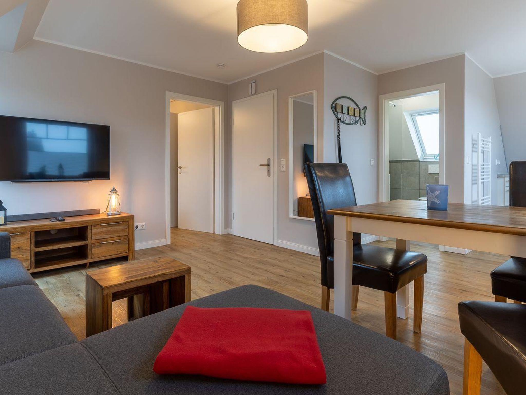 Das App. Dorf im Ferienhaus Rückenwind verfügt über ca. 45 m² Wohnfläche und bietet Platz für 1-3 Personen.