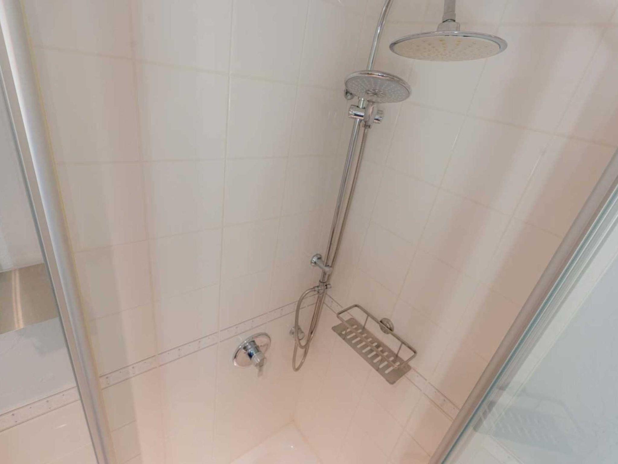 Badezimmer (Duschbad) mit Dusche, WC und Föhn.