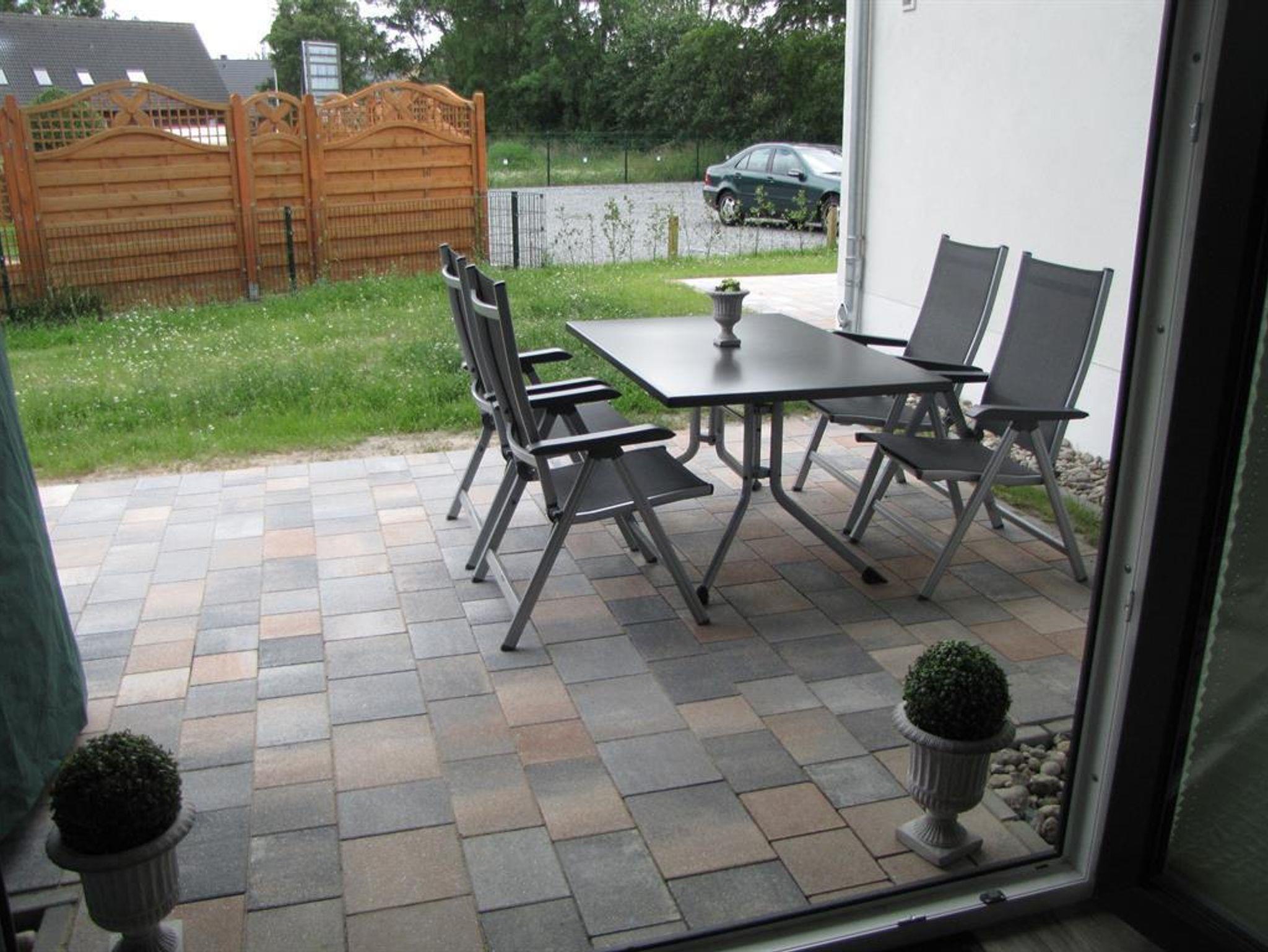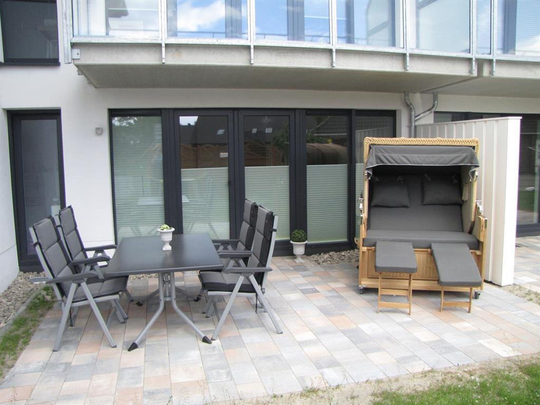 Die Ferienwohnung liegt in einem im Jahre 2014 errichteten Appartementhaus und ist geschmackvoll eingerichtet. Über den Flur, der mit Garderobenmöbeln ausgestattet ist, erreichen Sie Wohn-/Esszimmer, Schlafzimmer, Duschbad und Abstellraum. Das Wohn-/Esszimmer ist mit einer komplett ausgestatteten, modernen Küchenzeile versehen, an die eine Essecke angegliedert ist. Die gemütliche Sitzecke ist behaglich ausgestattet mit großem Flachbildschirm, DVD-/Blu-Ray-Player, bluetooth-fähiger Stereoanlage, Gesellschaftsspielen und Lesematerial. Aus dem Wohnzimmer haben Sie direkten Zugang zur möblierten Terrasse mit großzügigem Strandkorb (2,5-Sitzer), Gartenmöbeln und Grill. Das Schlafzimmer ist geräumig und besteht aus einem Doppelbett mit offenem Fußende, Nachttischen, großzügigem Kleiderschrank und einem Herrendiener zur Ablage von Kleidungsstücken. Im Badezimmer finden Sie neben Dusche, WC und verschiedenen Badmöbeln einen Fön und Badutensilien. Bügeleisen und Bügelbrett befinden sich im Abstellraum. Für Kleinkinder ist ein Kinderreisebett und Hochstuhl kostenfrei verfügbar, welches für Sie im Keller bereit steht.