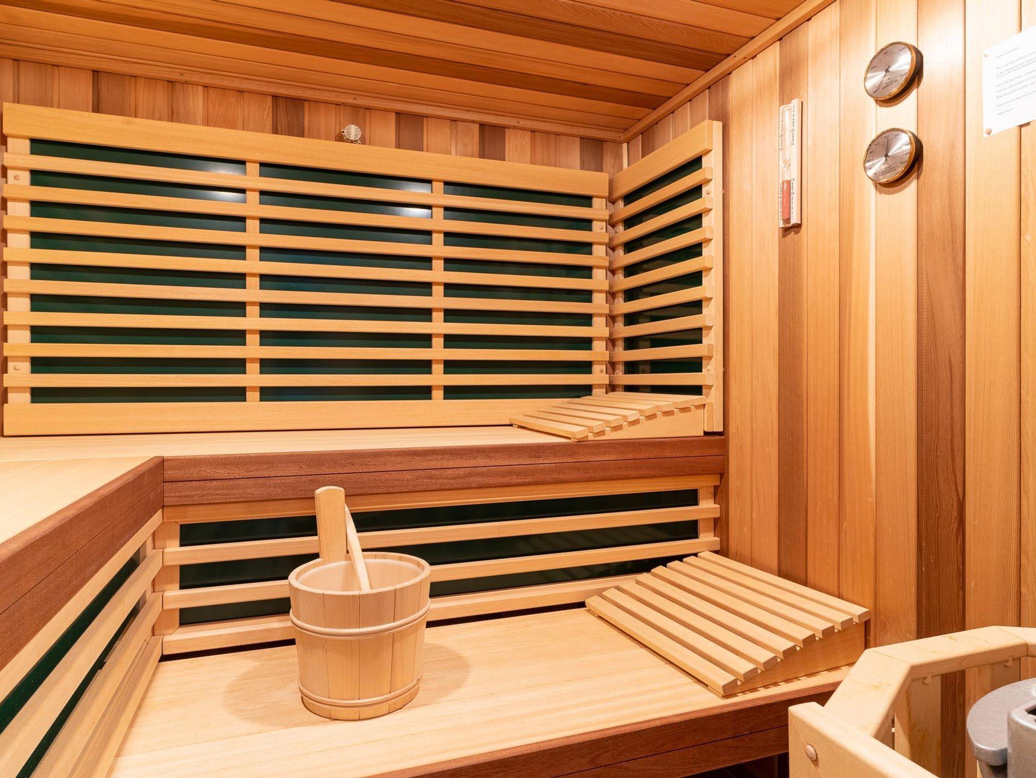 Als Highlight zum Entspannen finden Sie im Obergeschoss zudem unsere „Helo“-Sauna/Infrarot/Dampfsauna (210 x 210 cm).