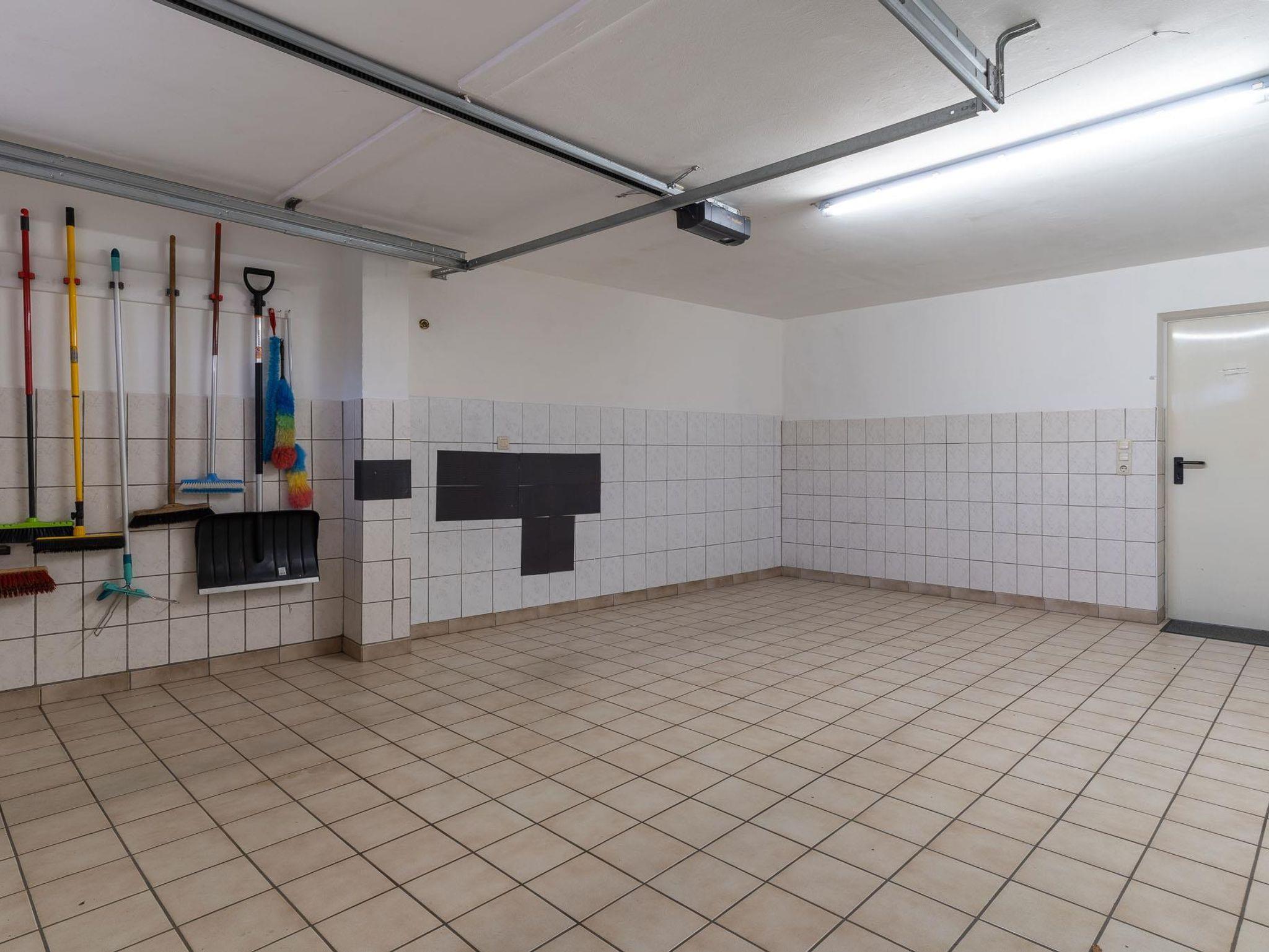 Ins Haus integriert ist eine Garage mit Abstellmöglichkeiten.