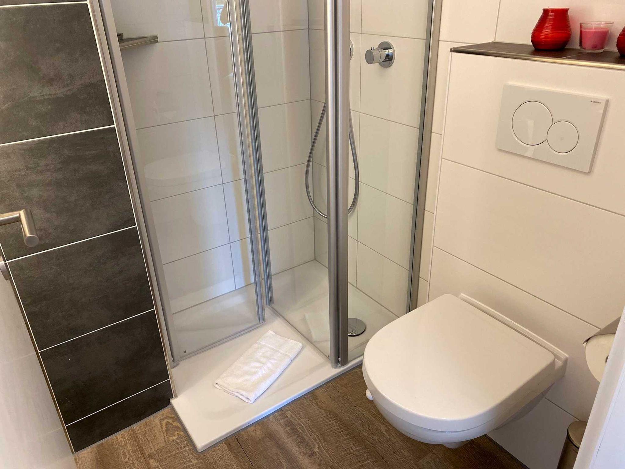 Modern, gemütlich und zentral ! Komplett renovierte, moderne 2-Zimmer Ferienwohnung in St. Peter-Bad für bis zu 3 Personen besticht nicht nur mit dem großen, sonnigen Nord-West-Balkon. Auch an der gemütlichen Sitzecke, der modernen, offenen Küche mit 4-Plattenherd und Backofen und dem modernisierten Bad werden Sie Ihre Urlaubsfreude haben. Nachts spannen Sie auf der modernen Schlafcouch im Wohnzimmer oder im Doppelbett des Schlafzimmers aus. Wärme gibt die neue Infrarot-Heizung.PKW Stellplatz auf dem Grundstück, Nr. 1.