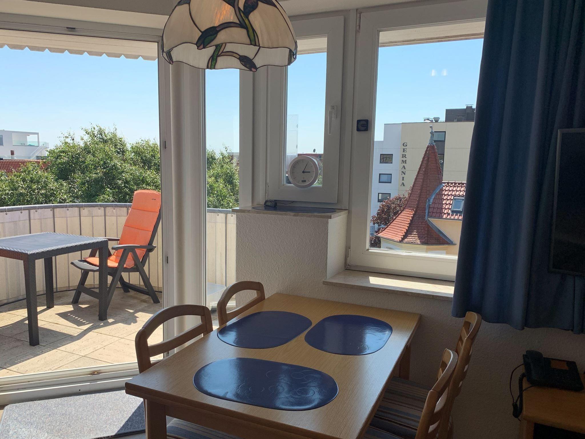 Genießen Sie den atemberaubenden Meerblick von unserem sonnigen Süd-West-Balkon in der gemütlichen 2-Zimmer-Ferienwohnung im 4. Obergeschoss. Diese Unterkunft bietet Platz für bis zu 4 Personen und ist ideal für einen erholsamen Urlaub.