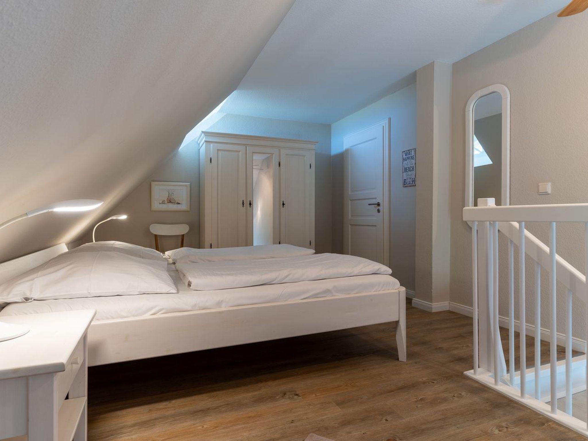 Das wunderschöne Apartment unter Reet wurde mit modernen Möbeln ausgestattet und bietet großzügigen Platz für 2 Personen. Das Grundstück mit Stellplatz wurde mit hübschen Pflanzen angelegt. Auf der Sonnenterrasse mit Gartenmöbeln und Strandkorb, umgeben von Schafwiesen und Pferdekoppeln, kann man herrlich ausspannen und die Ruhe genießen. Das Appartement befindet sich im Erdgeschoss über 2 Etagen. Es verfügt über ca. 60 m² Wohnfläche und teilt sich wie folgt auf: Auf der ersten Etage befindet sich ein großzügiger Wohnraum mit einer offenen Küche und einem gemütlichen Essbereich. Die Küche ist voll ausgestattet. Ein separates Duschbad bietet jeden Komfort. Über eine Holztreppe gelangt man zur Schlafgalerie im Dachgeschoss. Das Schlafzimmer verfügt über ein 1,8 x 2,0 m Bett. Kostenlose W-LAN Nutzung.