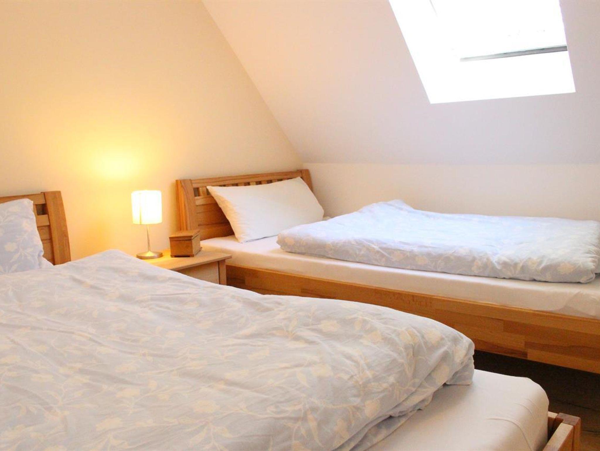 • ein Schlafzimmer mit zwei Einzelbetten (je 1m x 2m) und einem Kleiderschrank