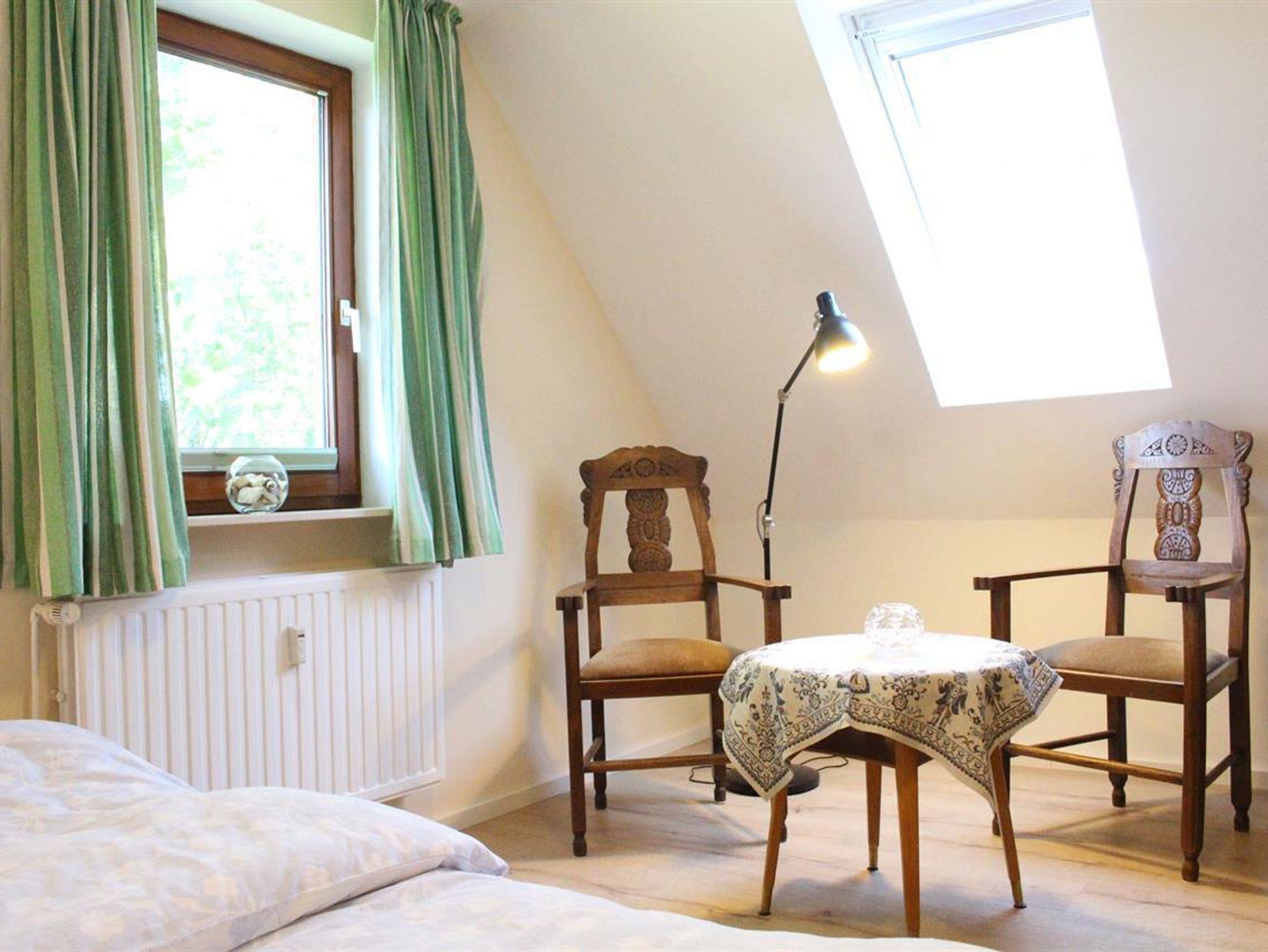 Über eine Wendeltreppe erreichen Sie den zweiten Schlafraum im Dachgeschoss. Ausgestattet mit einem Doppelbett (1,80m x 2,10m), mit viel Stauraum (großer Einbaukleiderschrank und Abseite!) und mit einer kleinen Leseecke.